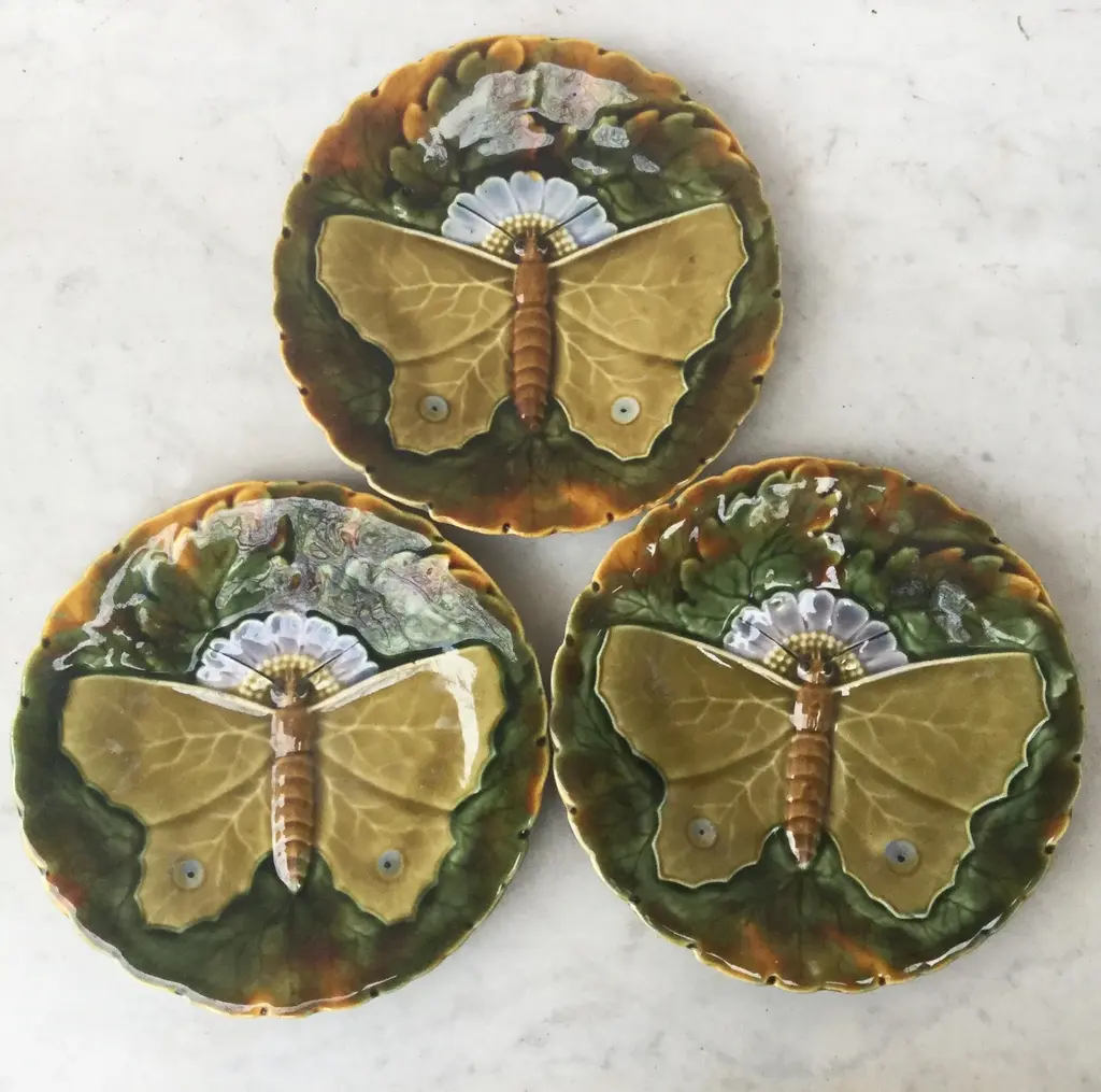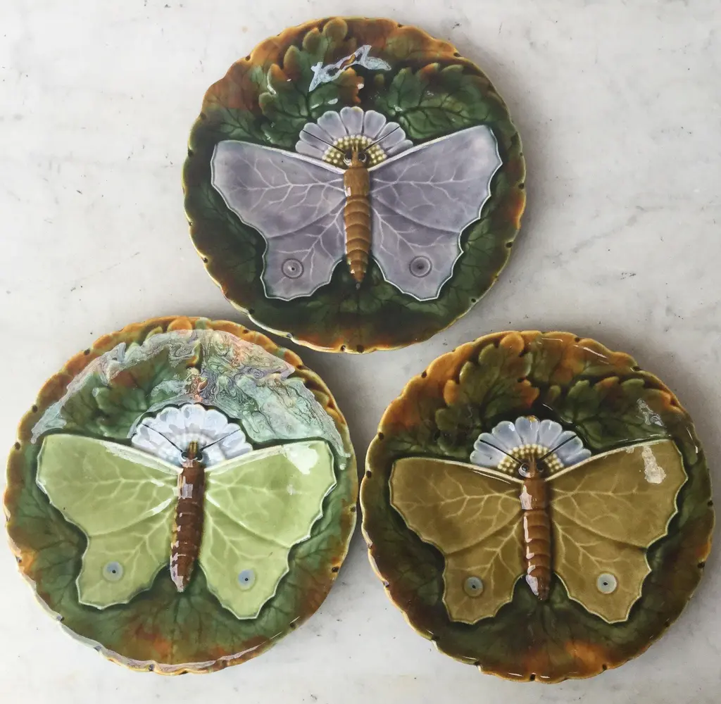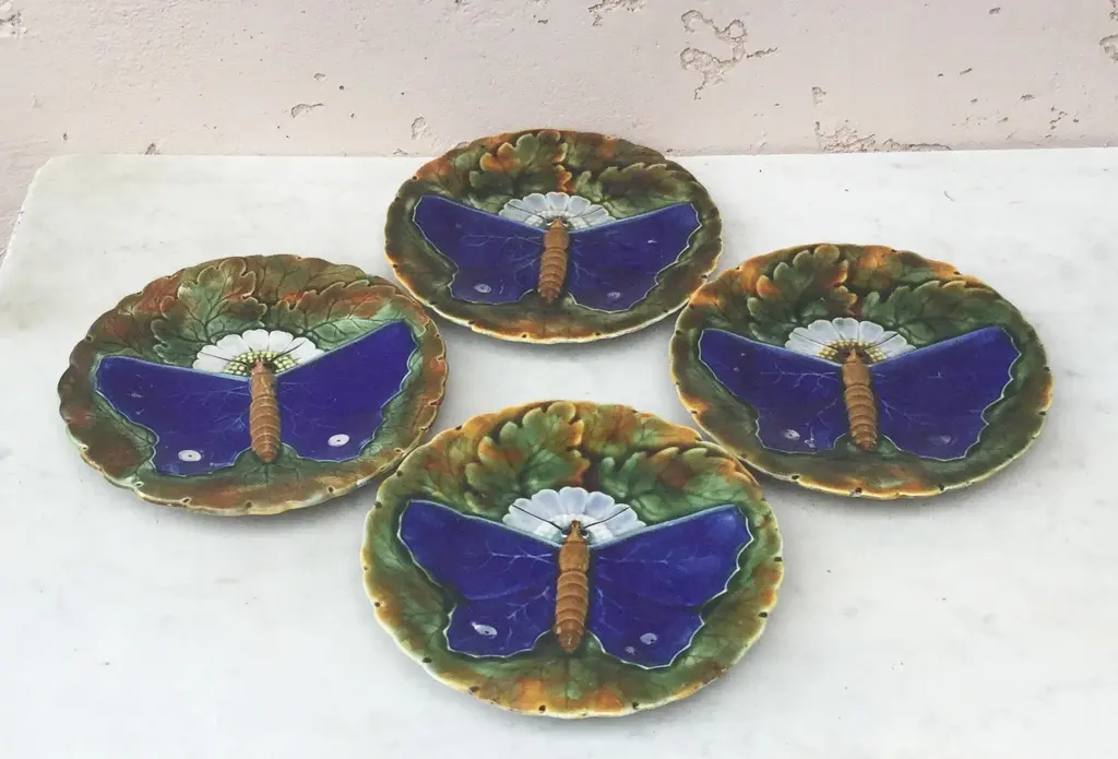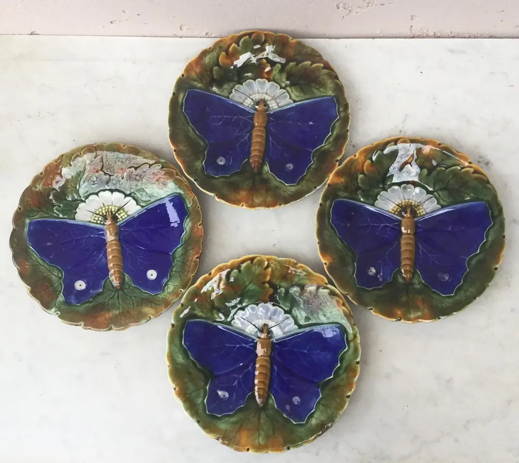 Majolica butterfly plate Josef Steidl Znaim, circa 1890. 4 plates available.