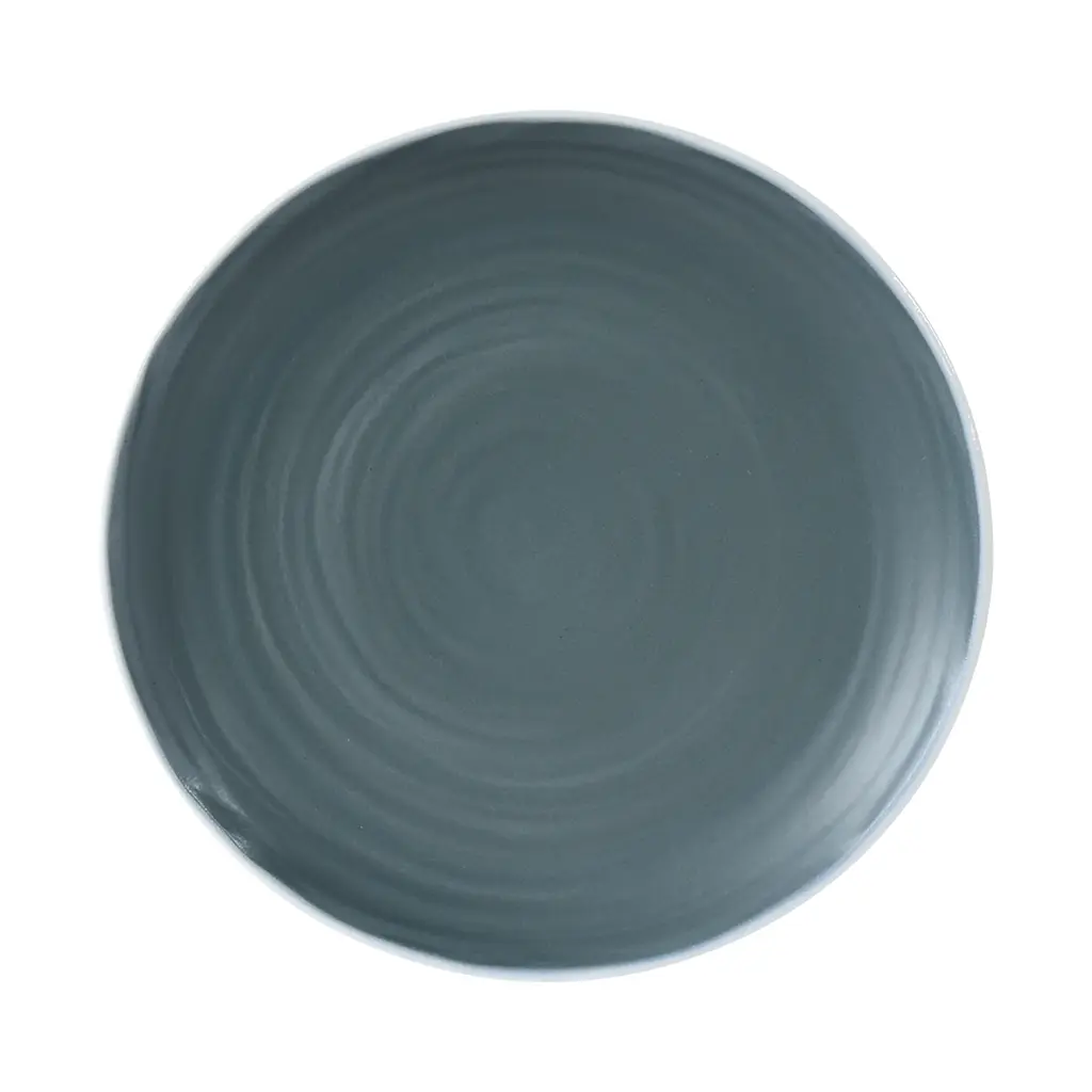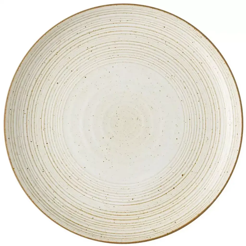 Modern and restrained in form, expressive and rustic in glaze. The artisan's hand is authentically reproduced in this stoneware pattern designed exclusively for Crate and Barrel by ceramic artist and designer Kathy Erteman at her 18th Street studio in New York City. A contemporary matte black exterior contrasts the rustic beauty of a shiny, speckled white glazed interior ringed with the subtly raised spiral associated with hand-thrown pieces. A raised clay rim features a sandy glaze that evokes the feel of exposed terra cotta. To capture the artisan look of this dinnerware, Erteman modeled prototypes to true scale by hand with her original glazes as reference for production. In the words of the designer, "When making tableware, I consider design and the rigors of daily use. The spirit of my hand in these pieces is modest, to harmonize with and act as a support to the prepared ingredients."
