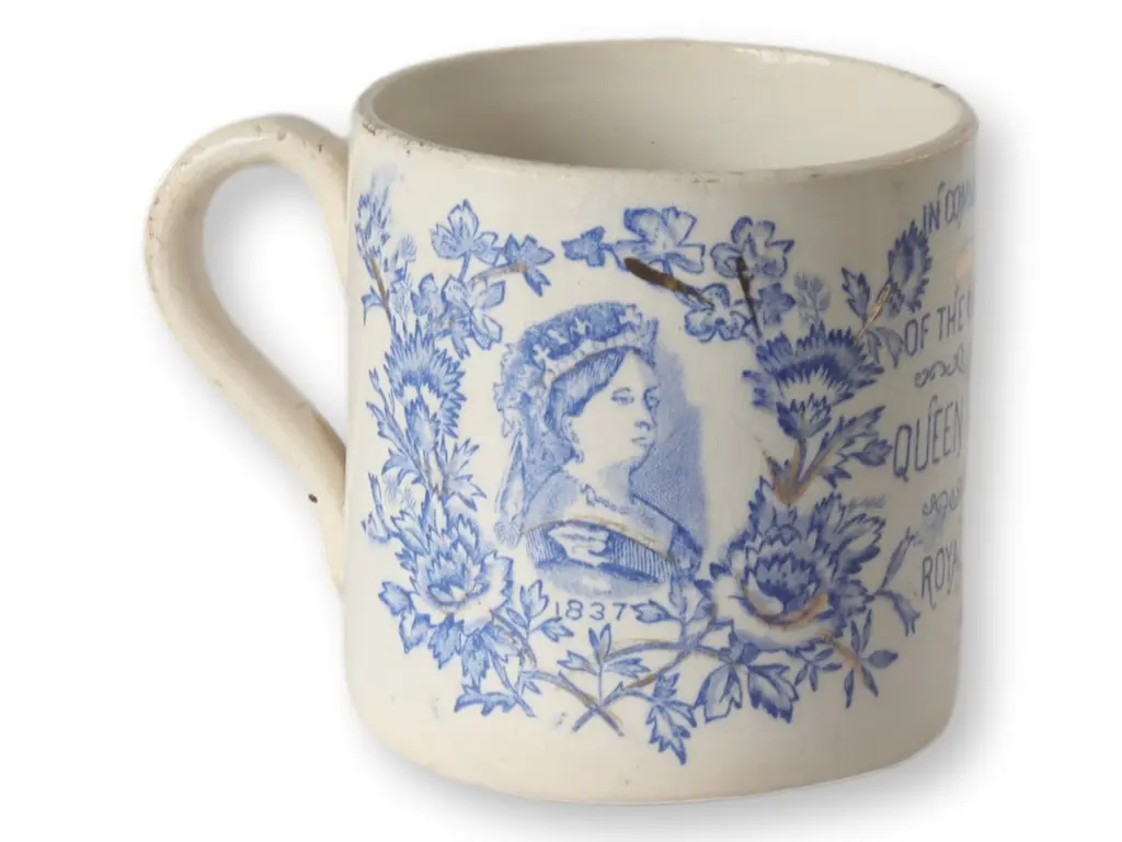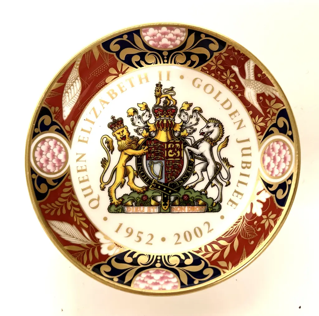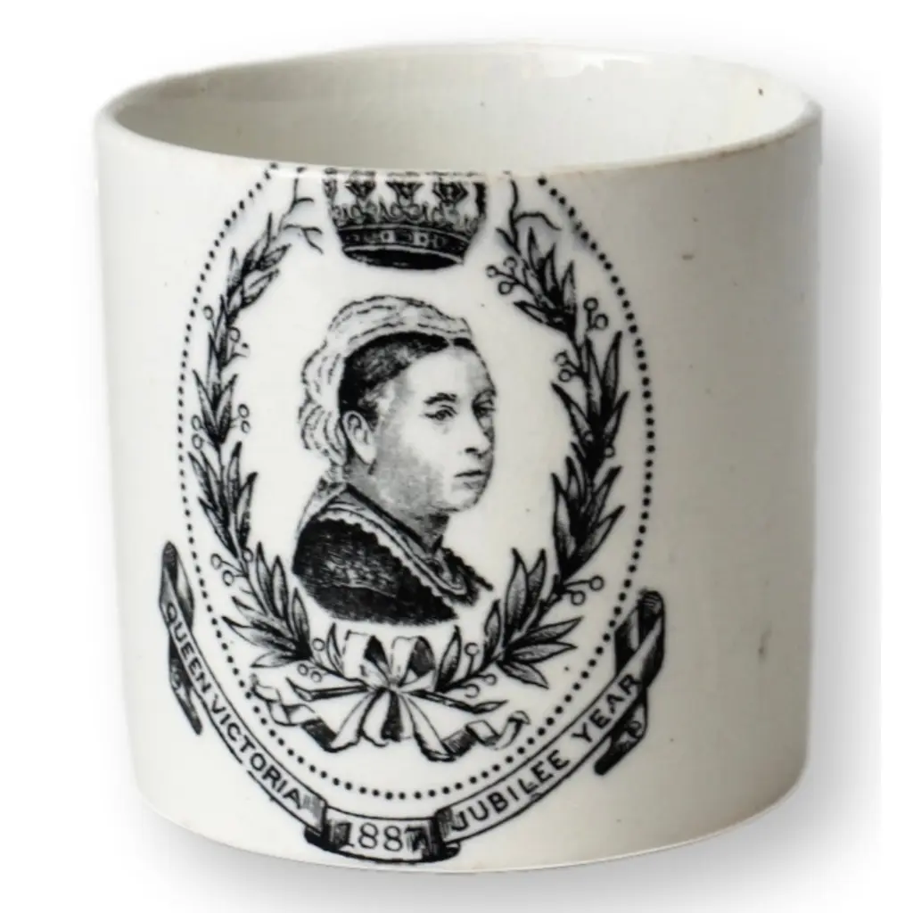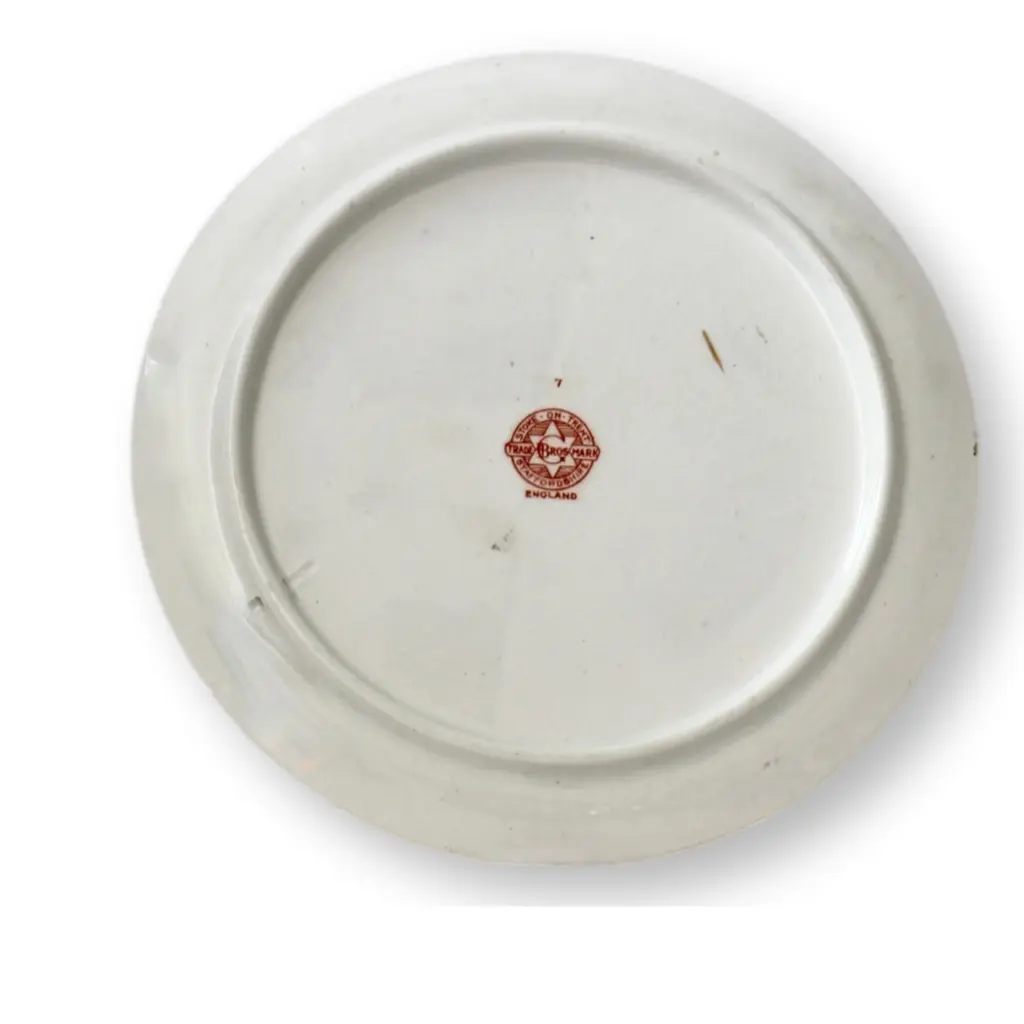 This English Staffordshire plate commemorates the Royal Coronation of King Edward VII and Queen Alexandra on June 26, 1902. Featuring a vibrant transfer design, it showcases the royal couple surrounded by Union Jack flags, floral garlands, and the British coat of arms. The imagery is crowned with the royal crown radiating light, symbolizing the dawn of a new reign. The plate has a predrilled hole for mounting, making it an ideal display piece. Stamped on back.