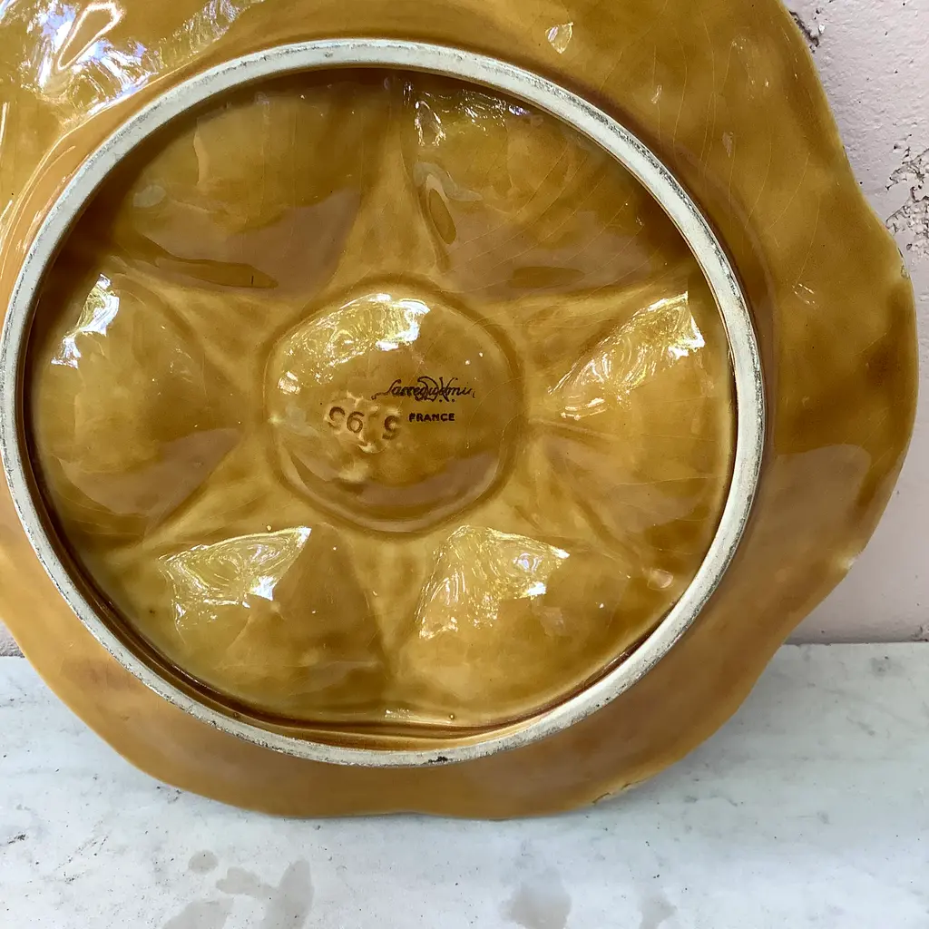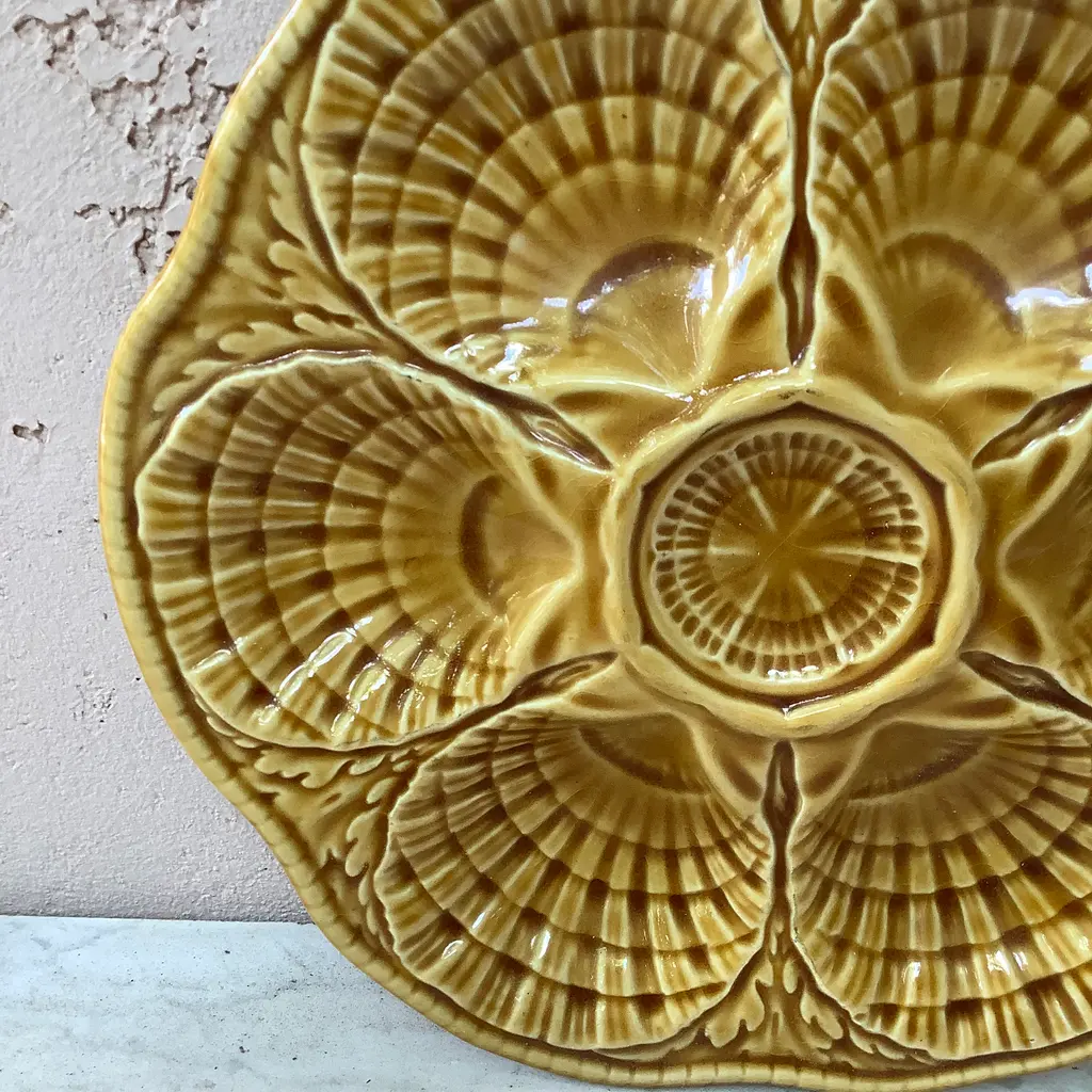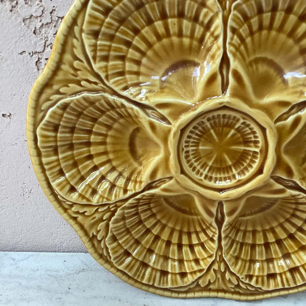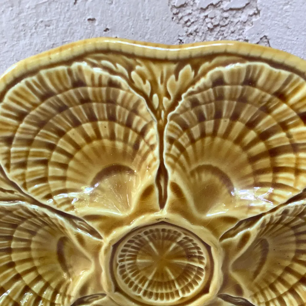 1930 Sarreguemines Yellow Majolica Oyster Plate