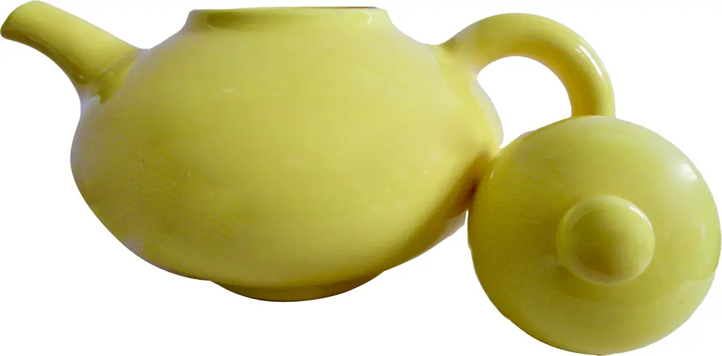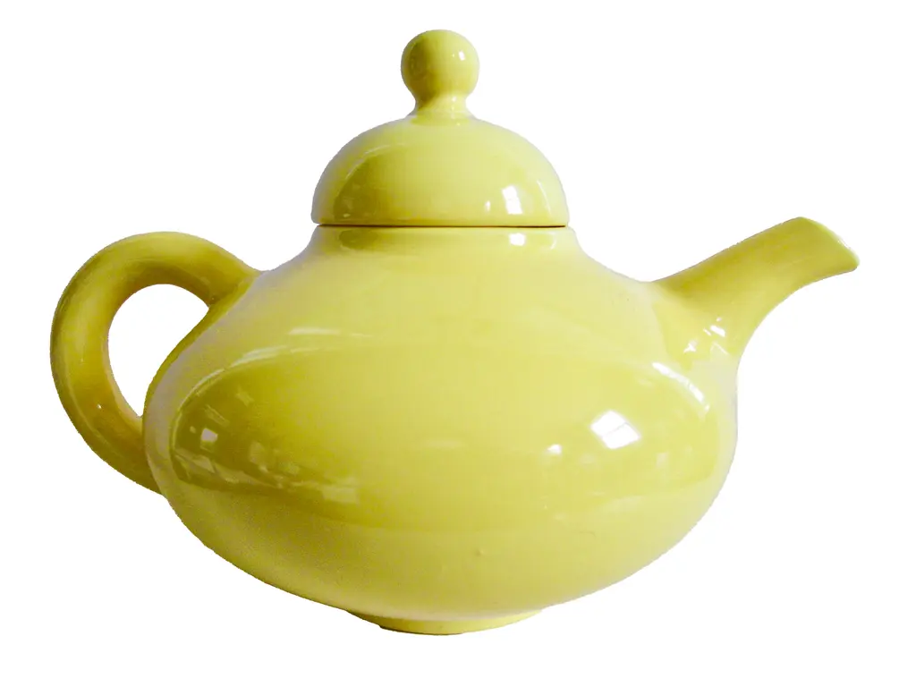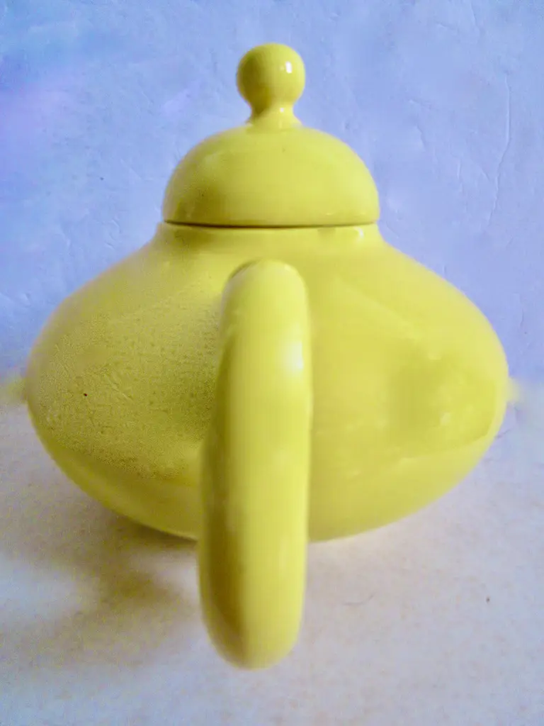 Iconic 1940s Gladding McBean California pottery teapot. Fabulous form in a glossy yellow glaze. Marked "Franciscan Ware made in California U.S.A." with a company mark used from 1940 through 1947.