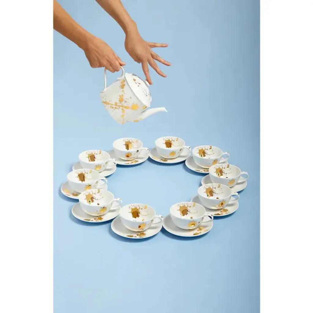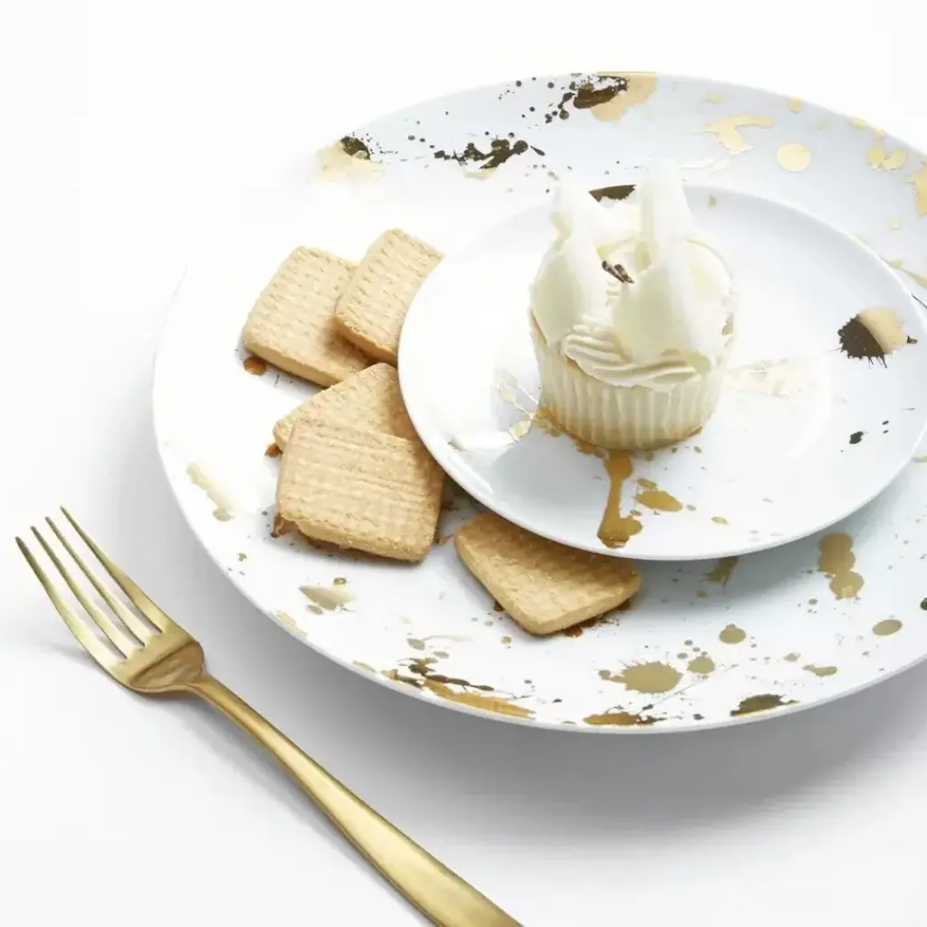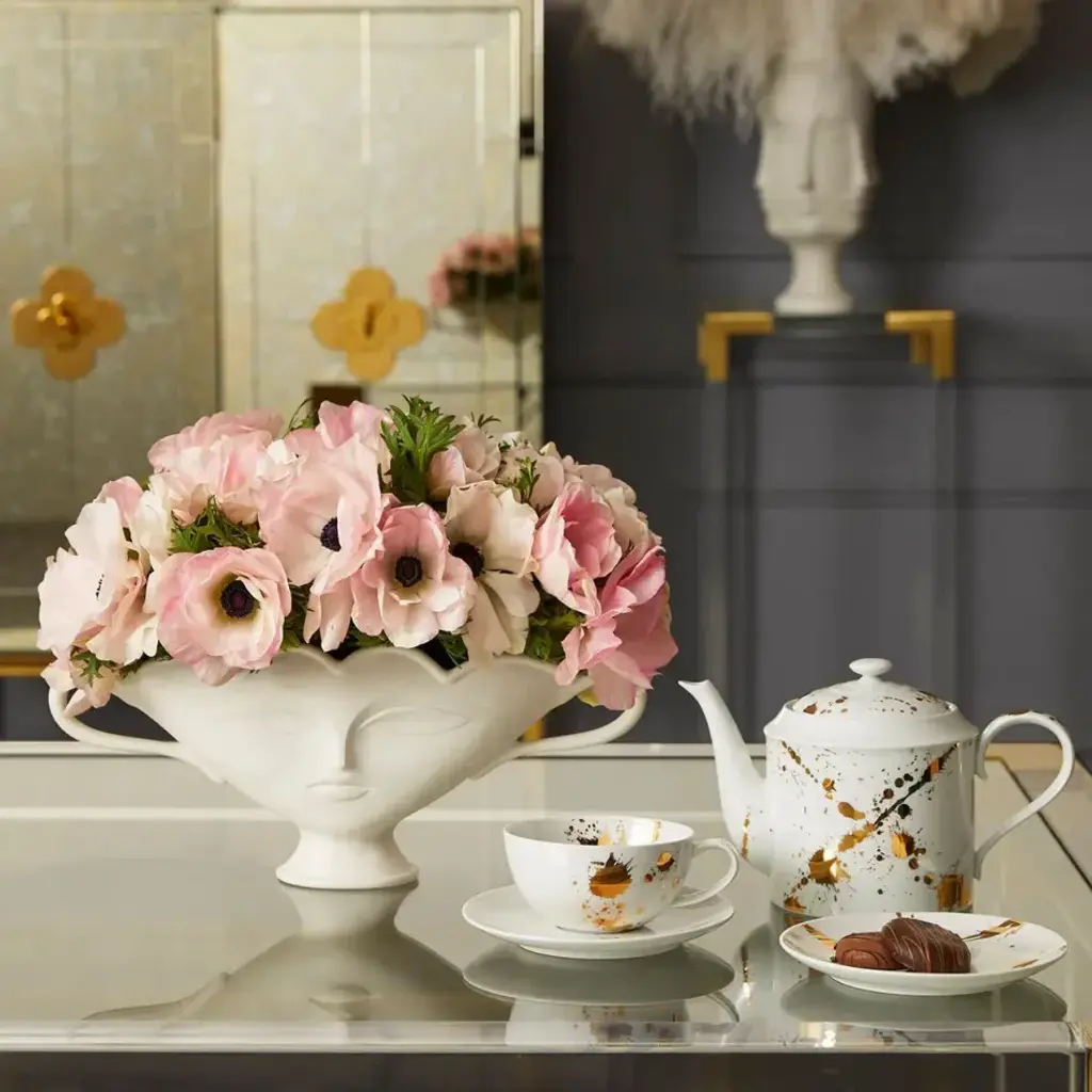 Named for the temperature at which gold melts, our 1948 collection features classic porcelain dinner and serveware splattered with real gold: the perfect balance of timeless and today, formal and fresh, uptown and downtown. Formal enough for a fabulous fête, but hardworking for use as an everyday luxury. Coordinate with our 1948 teapot, sugar bowl, and creamer for a splash of panache.