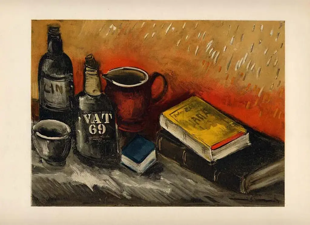 1958 Vlaminck Lithograph 27 Still Life With Whisky Bottle