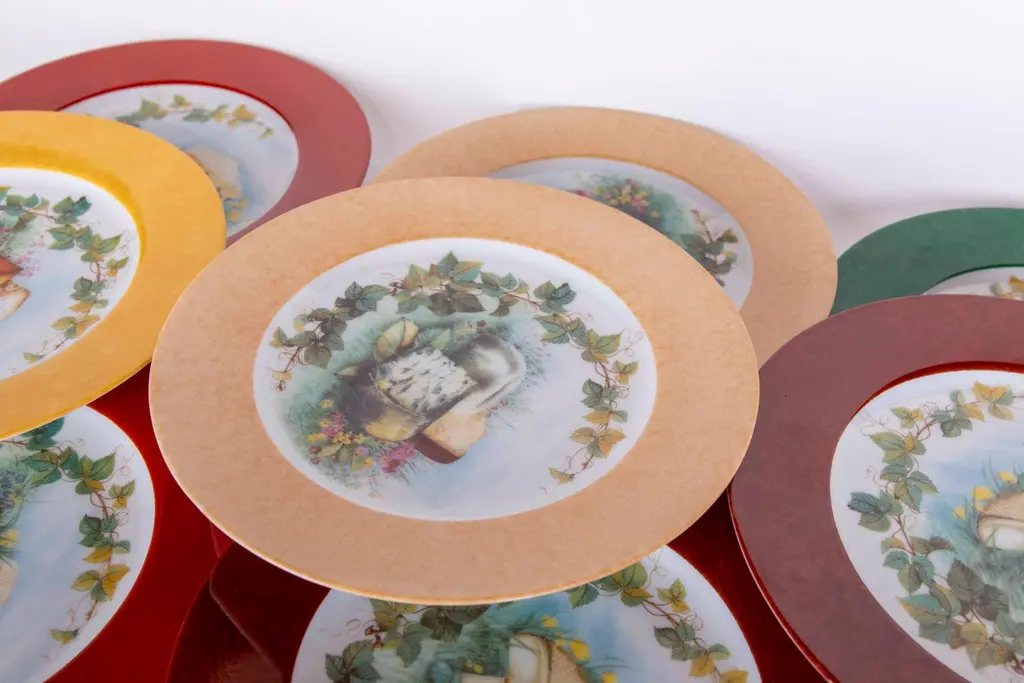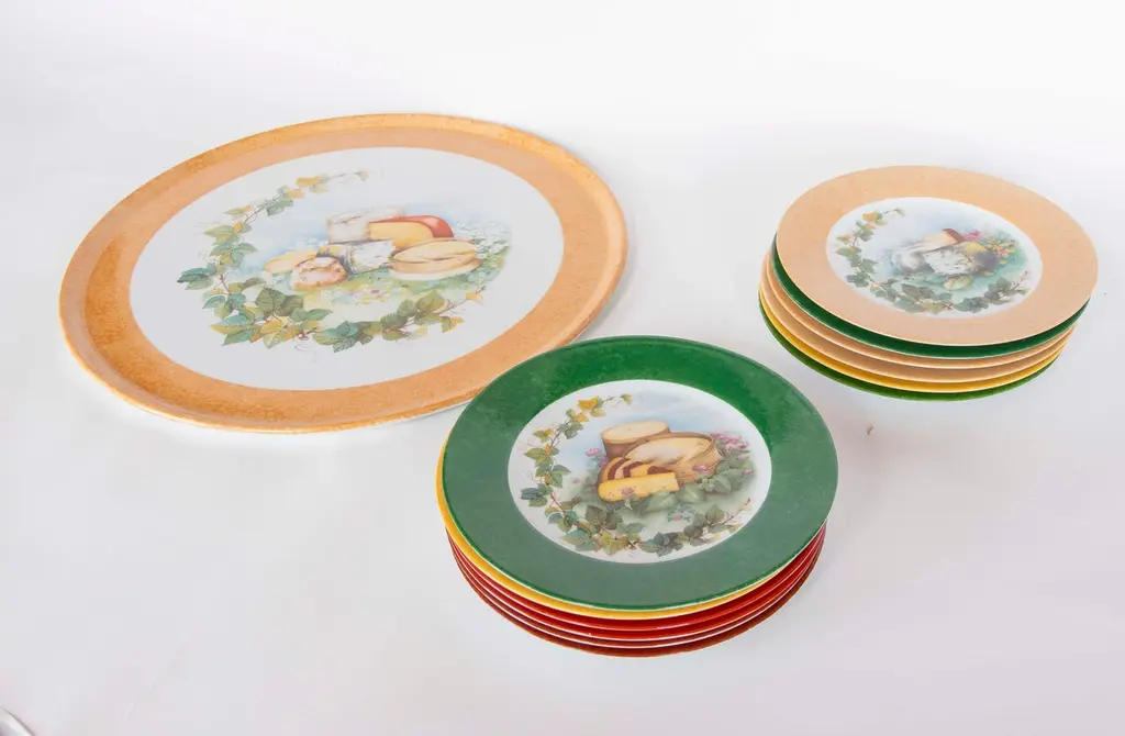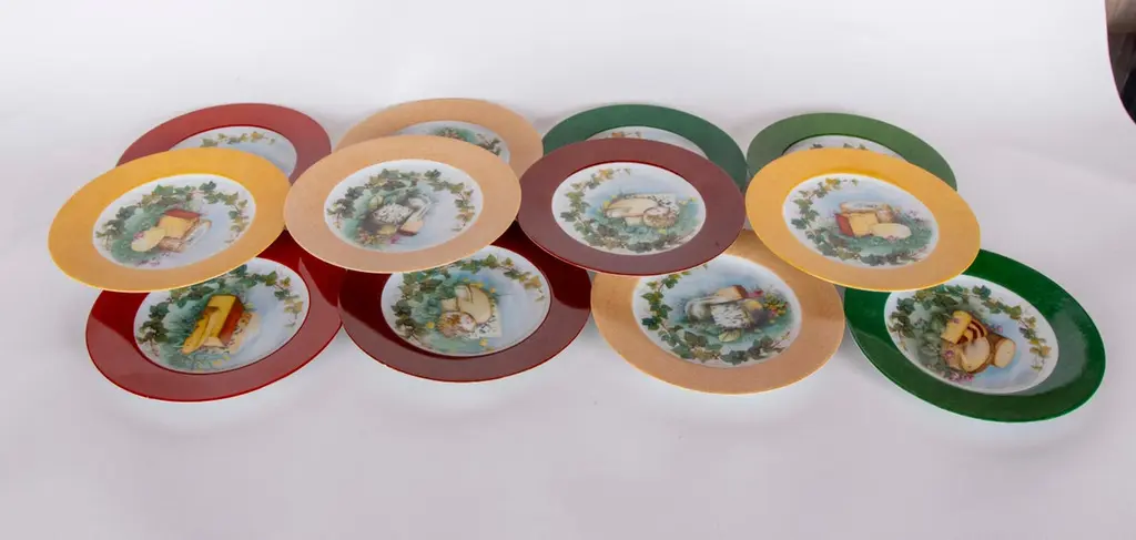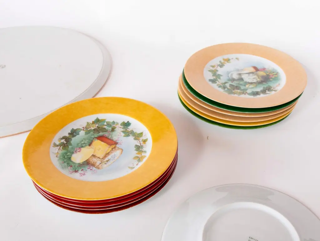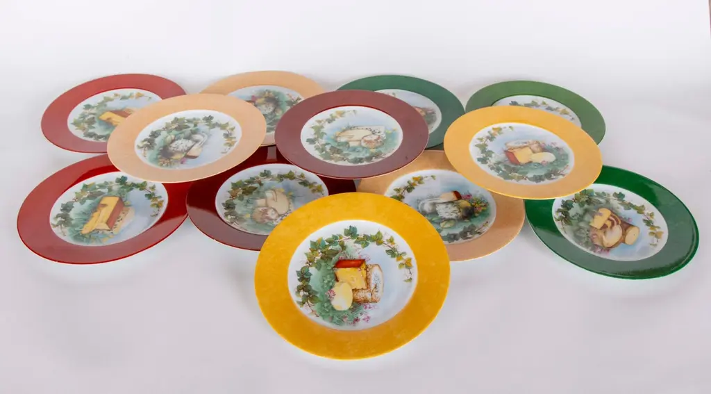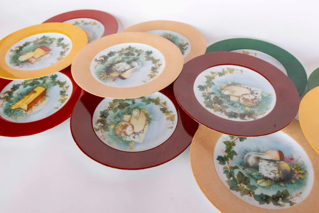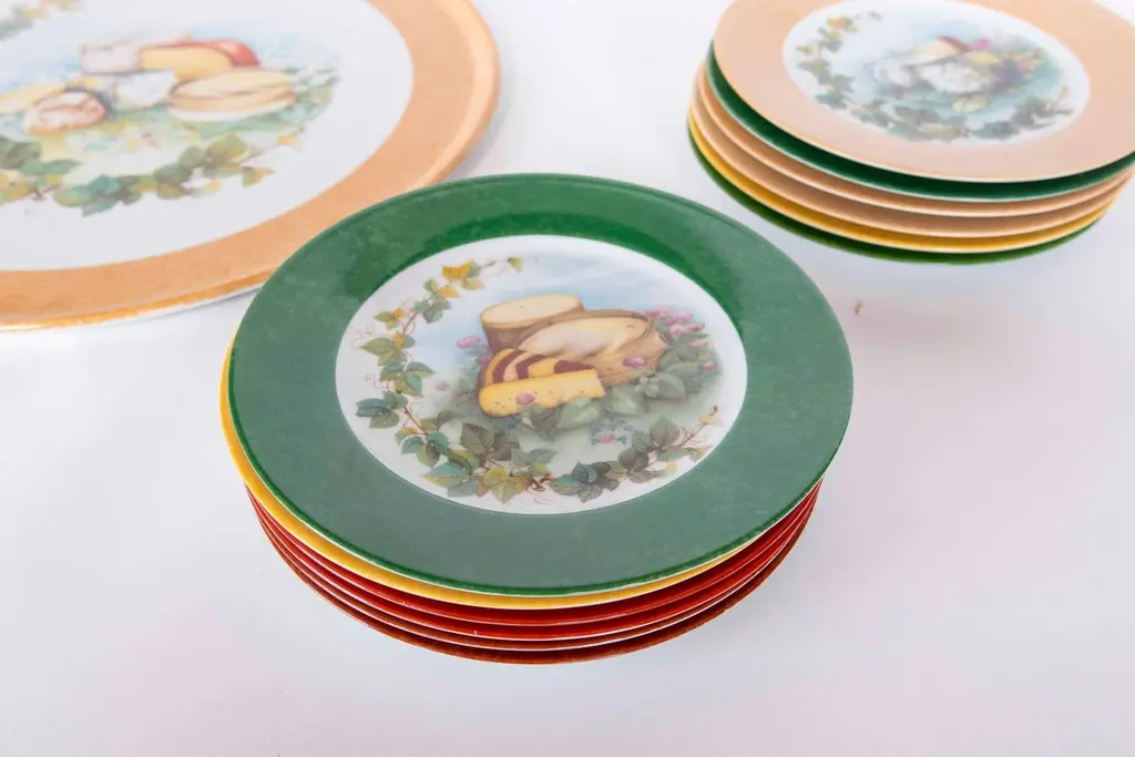 1970s Set Of Twelve Laure Japy Decorative Plates With Cheese And Fruit Patterns