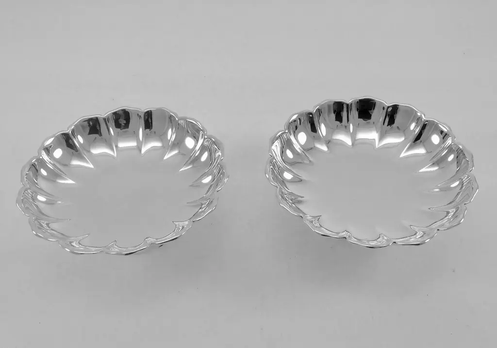 Ref # D 1440/6 Photo 254 Description: Silver Sweet Dish Fluted on a Circular Foot Pattern : Fluted - Size : 6 in. A Silver Sweet Dish Fluted on a Circular Foot, Sheffield Plate is The Finest Silver Plated Ever Made Electro Plated on E.P.N.S. , a quality silver plated on Nickel Silver Made in England, by James Dixon & Sons Marked : James Dixon, A 1 Retail Price : $ 140.00 Quantity Available : 50 A quality silver plated required by the Consumer Protection Agency in the U.K. A heavy silver deposit Crafted to last for a lifetime everyday use N.B. James Dixon & Sons, a distinguished silver company in Sheffield , England; supplier of finest stores in the U.K such as, Mappin & Webb, Garrard's etc... and abroad. Condition : New, Factory Original Packaging.
