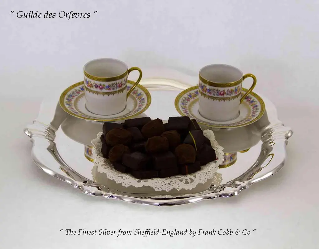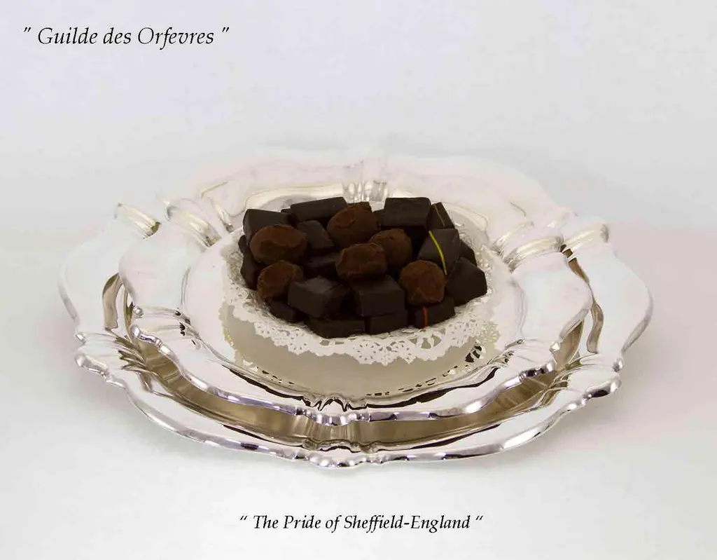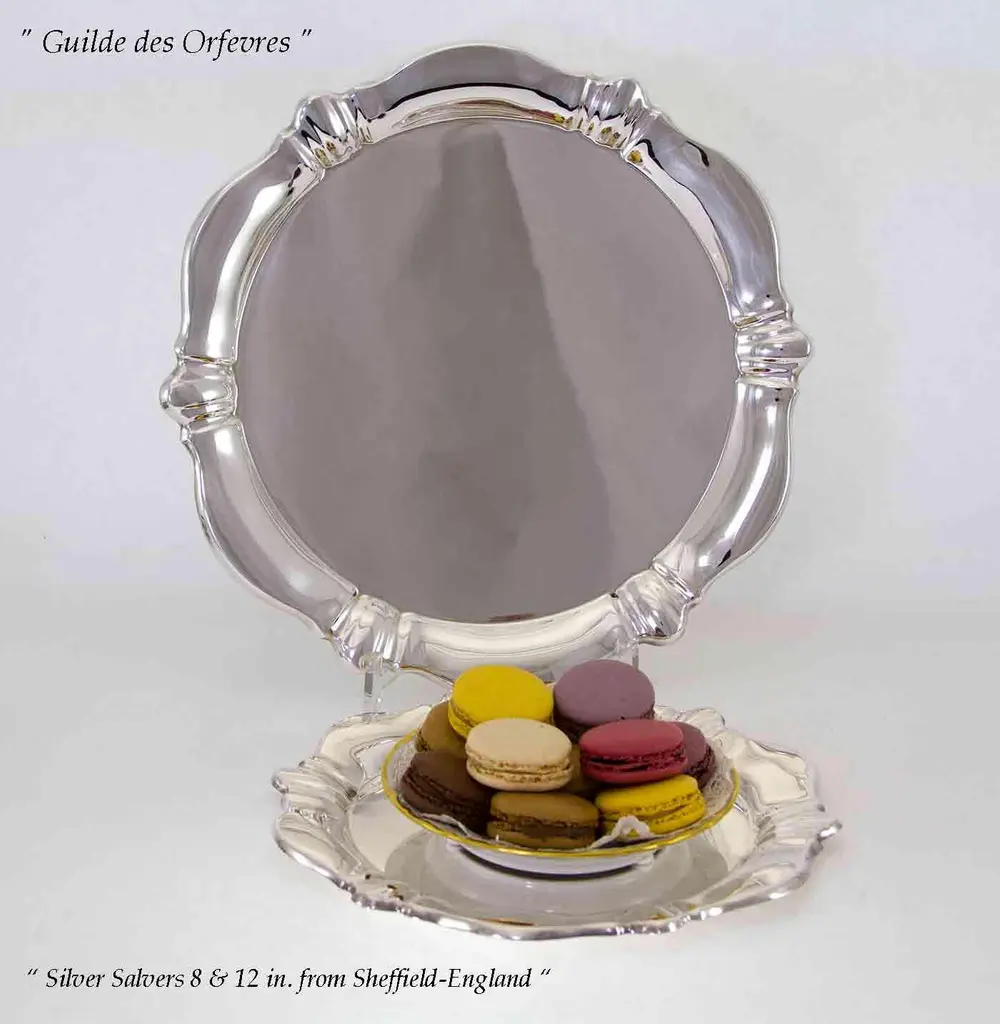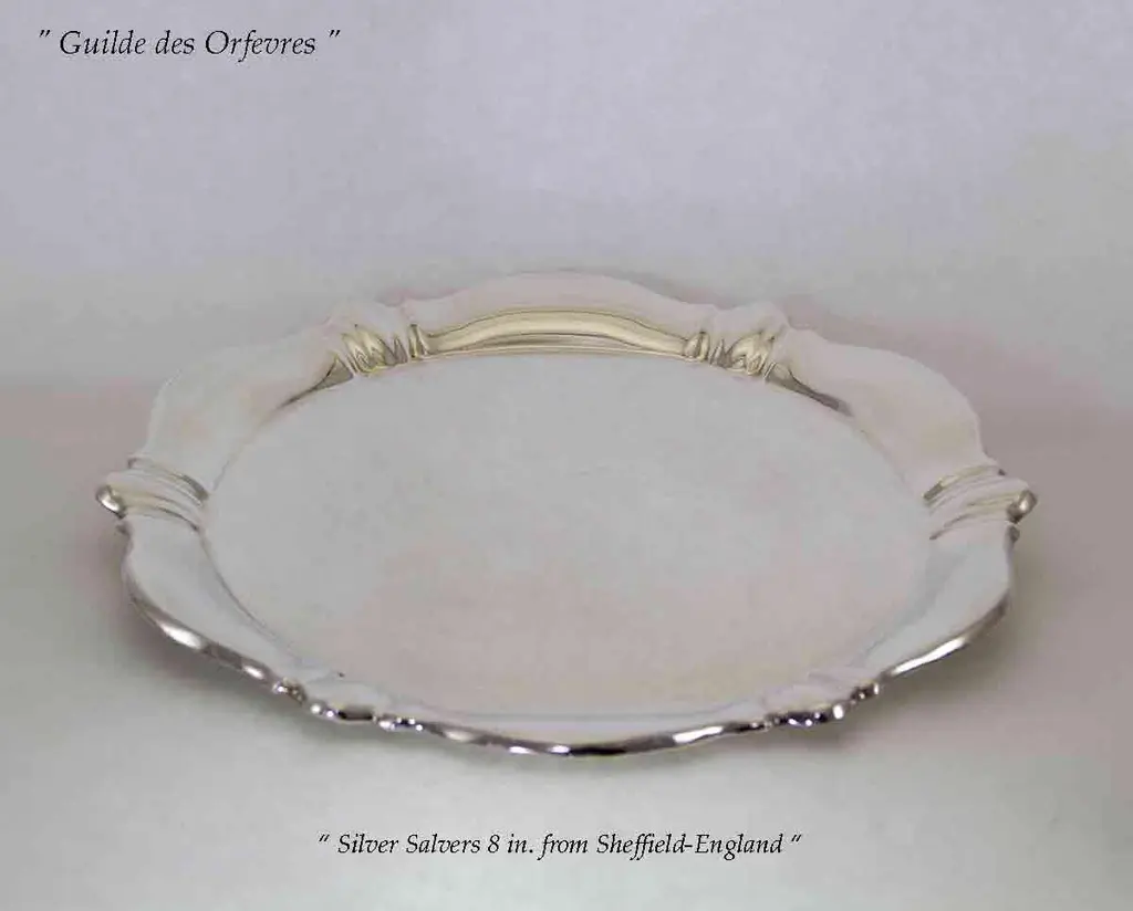 Reference # FC 12416- 12 Description: Round Silver Shaped Salver 12 in. Pattern : Scalloped Edge. Size : 12 in. Electro Plated on E.P.N.S. , a quality silver plated on Nickel Silver. Made in England, by Frank Cobb& Co. Marked : Frank Cobb A 1 Retail Price : $ 320.00 Wholesale : $ 195.00 Quantity Available : 18 Photo 395 A A 1 is a quality silver plated required by the Consumer Protection Agency in the U.K. A heavy silver deposit Crafted to last for a lifetime everyday use N.B. Frank Cobb, a distinguished silver company in Sheffield , England; supplier of finest stores in the U.K such as, Mappin & Webb, Garrard's etc... and abroad. Condition : New in the original Factory packing of 1970’s