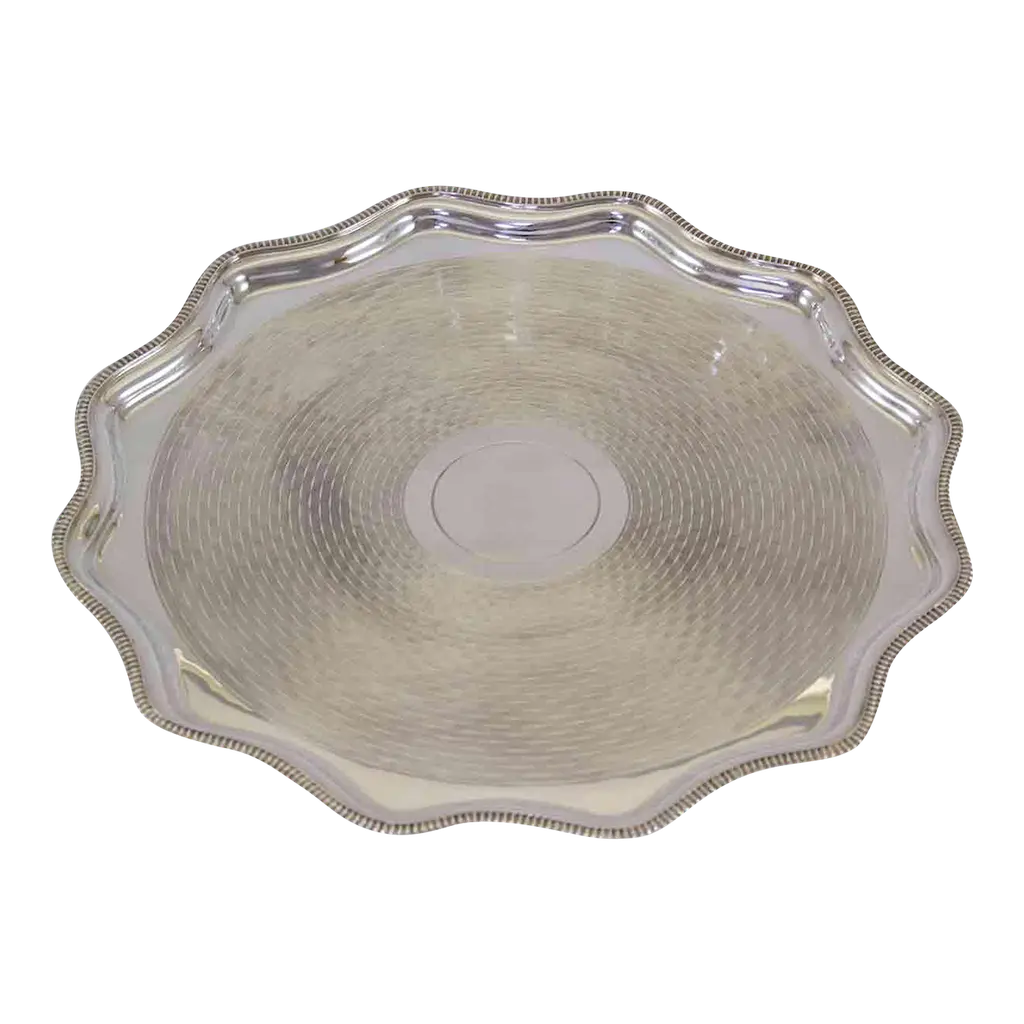 1970’s Vintage/new Silverplate Scalloped Edge Salver, Gadroon Mount, Engine Turned/guilloché