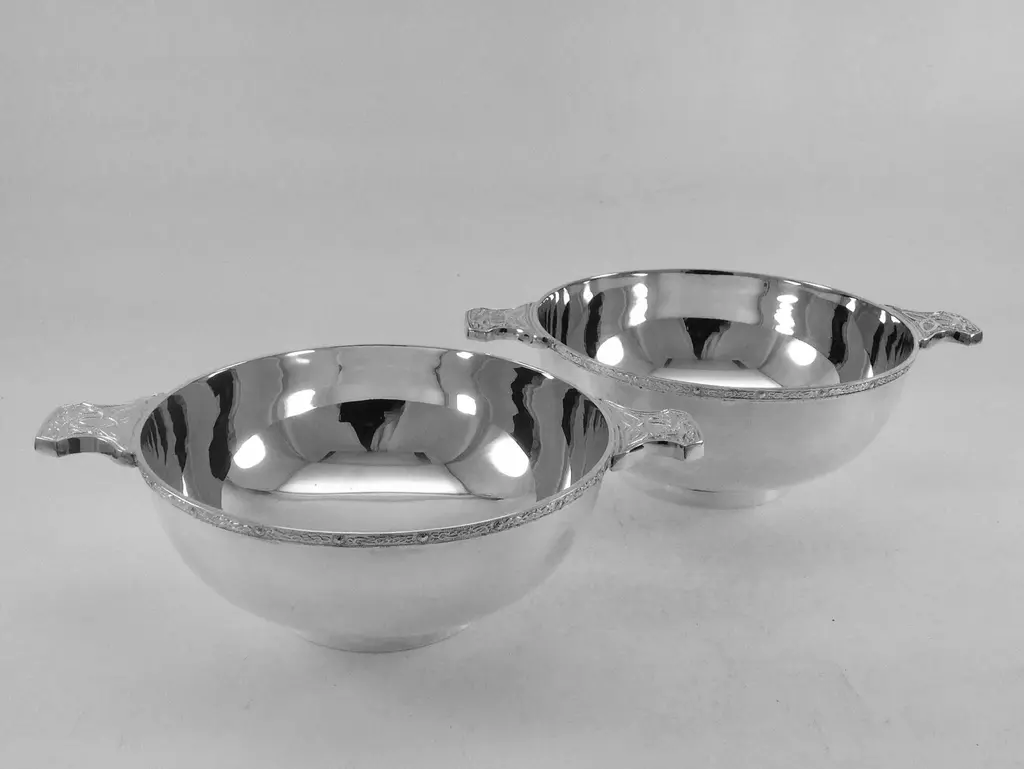 1980s Vintage/new Silverplated Quaich Bowl With Celtic Applied Border-