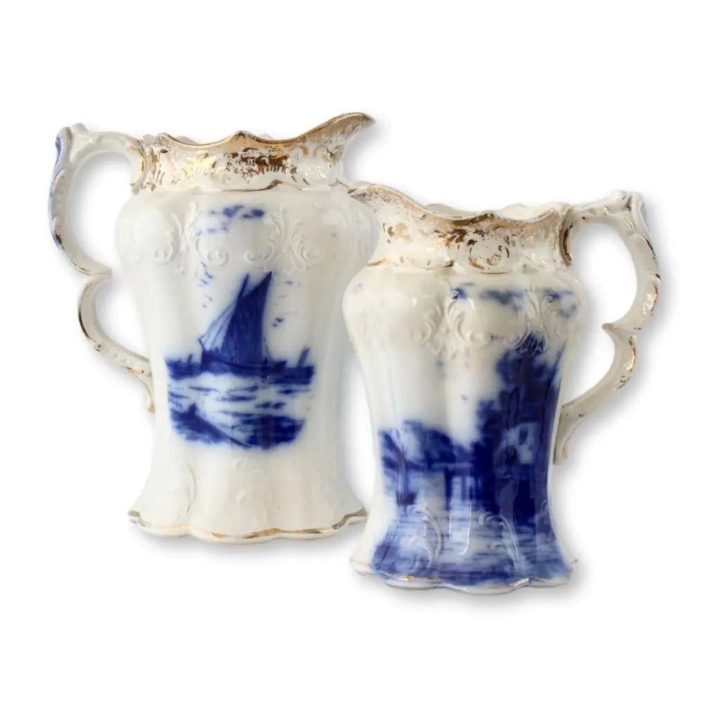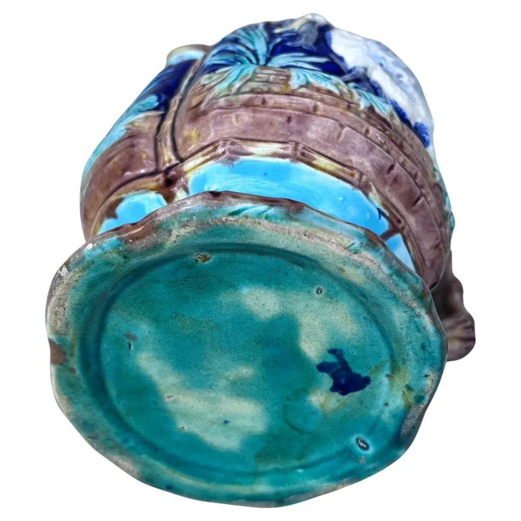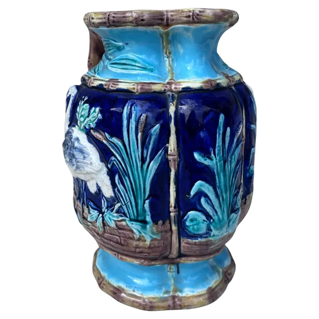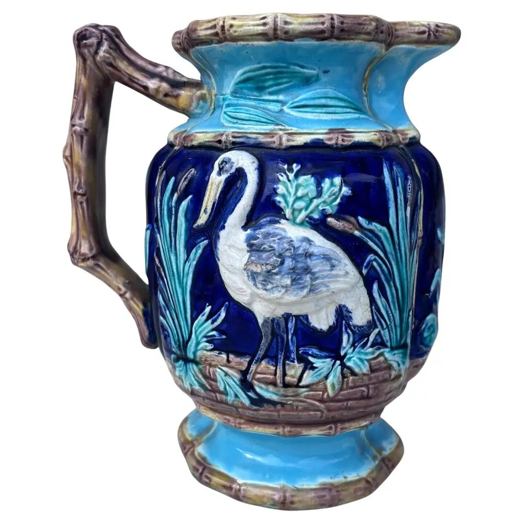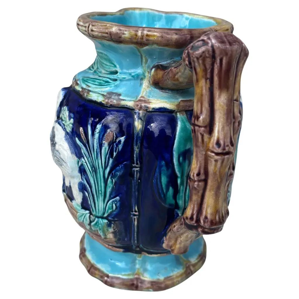 19th Century English Majolica Herons & Bamboo Pitcher Joseph Holdcroft