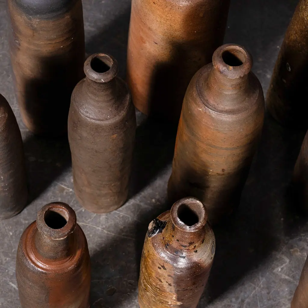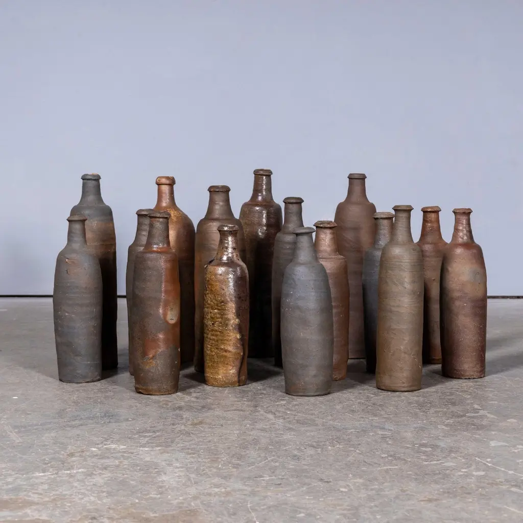 19th Century French Stoneware Bottles19th Century French Stoneware Bottles. An Exceptional collection of original 19th Century French stoneware bottles, hand made. We have a collection of over twenty, but the listing is for one single bottle. Heights vary slightly from 27 to 35 cm.WORKSHOP REPORTOur workshop team inspect every product and carry out any needed repairs to ensure that everything leaves us serviced and maintained ready for many more years of life. All of our vintage products show the rich beauty and history of their life with the knocks and bumps of many years of use and we try to minimise restoration to keep every piece as original as possible.Date: 19th CenturyMaker: Handmade - FranceDimensions:L 12 x W 12 x H 35 cm