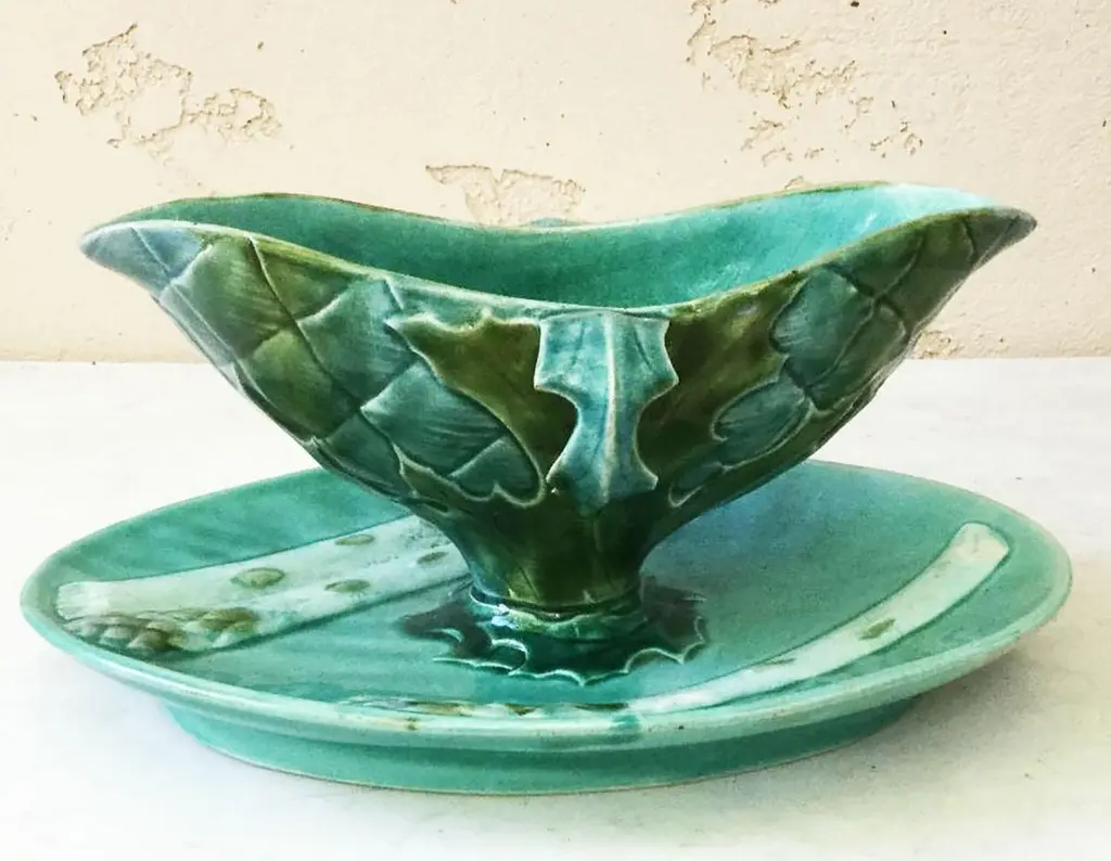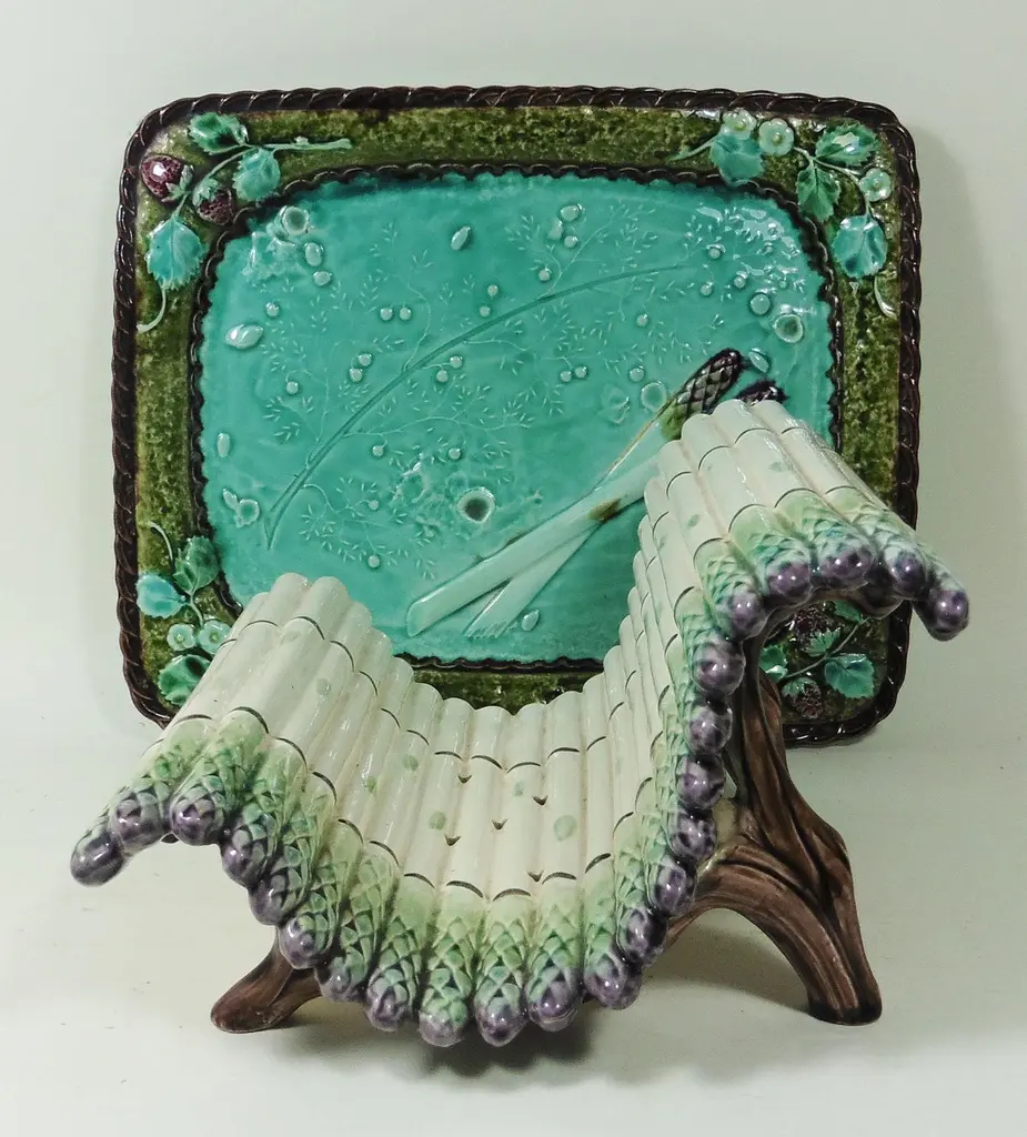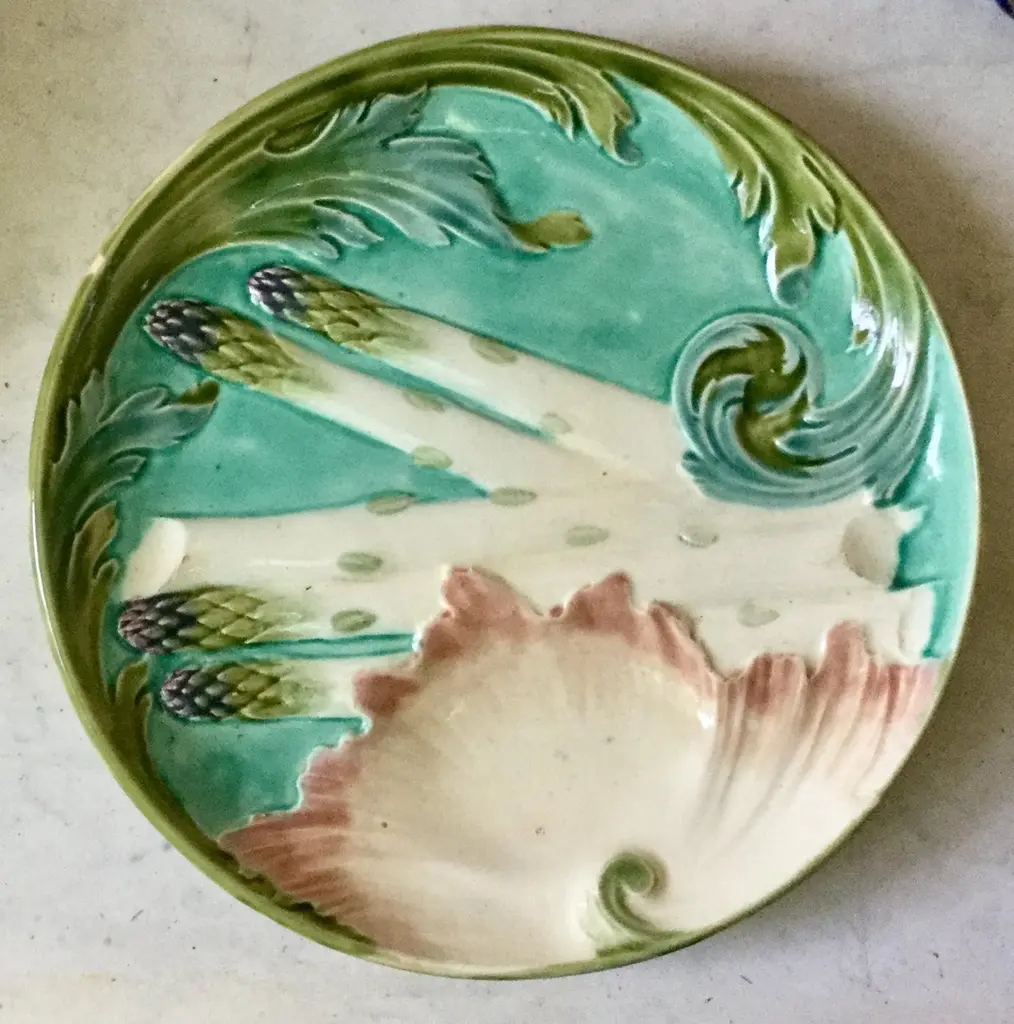 19th Century Majolica Turquoise Asparagus Plate Luneville