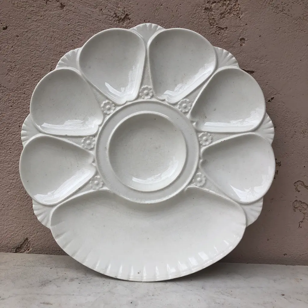 19th Century Minton White Majolica Oyster Plate. Dated 1880.