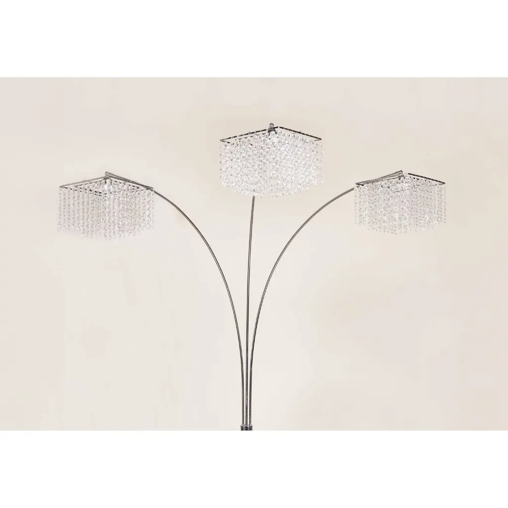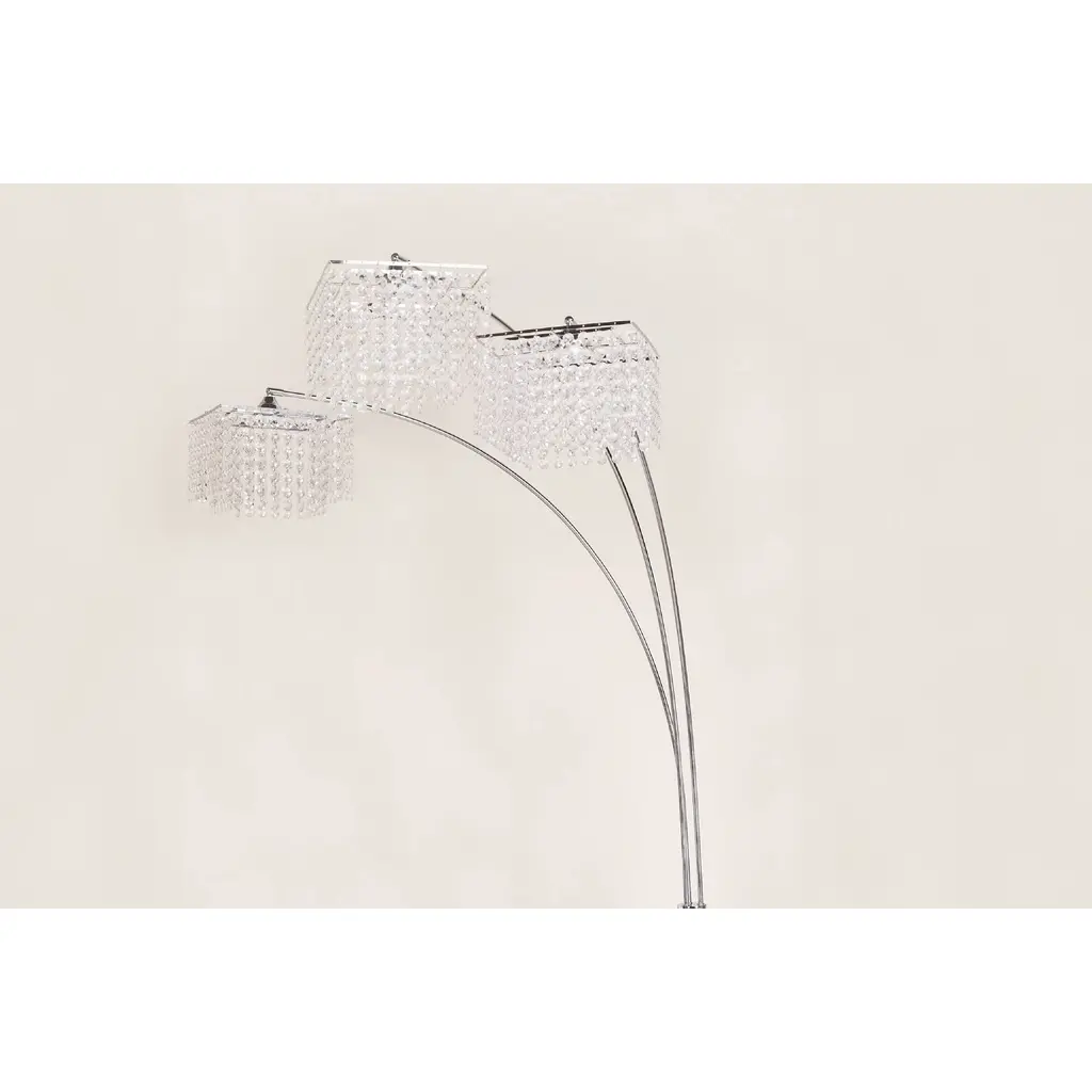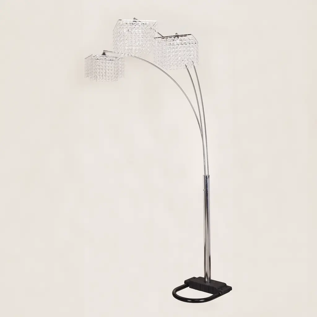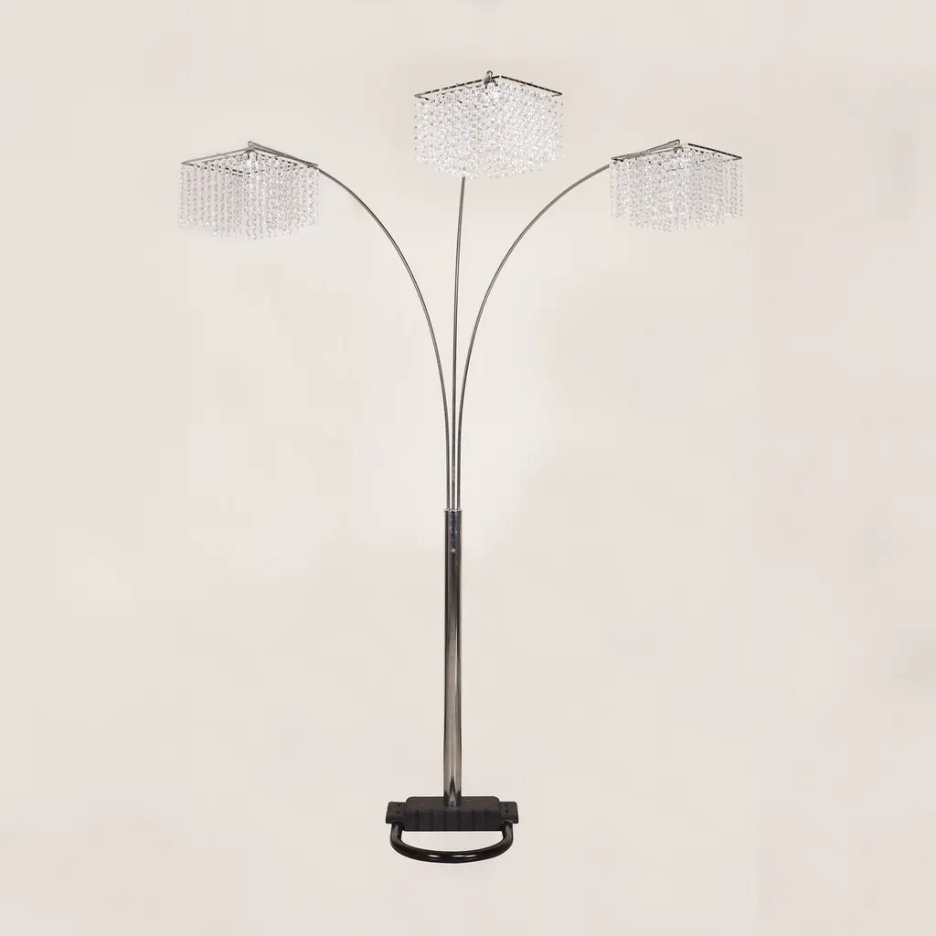 1Pc Modern Design Classic Luxury Sleek Multi-Head Floor Arc Lamp Half Moon Radiant Crystal-Encrusted Sleek Metallic Stems - Silver