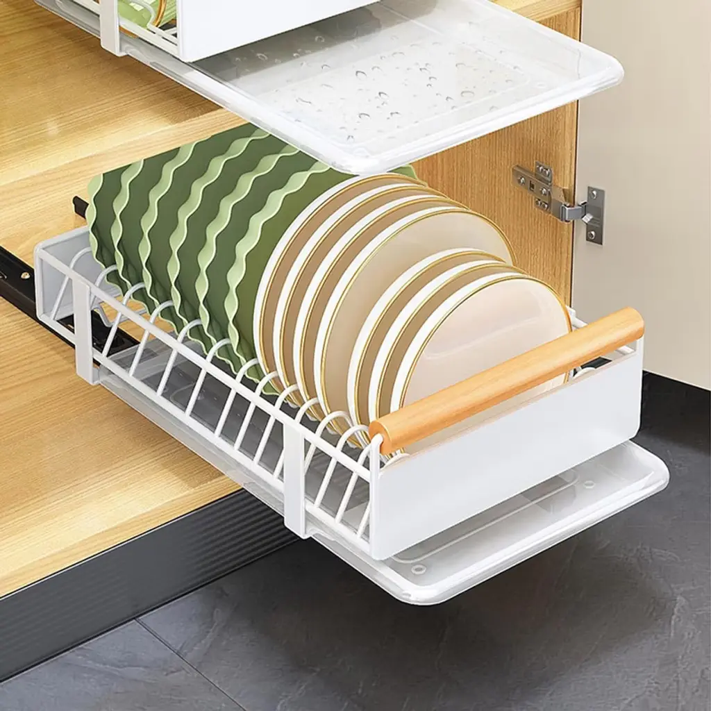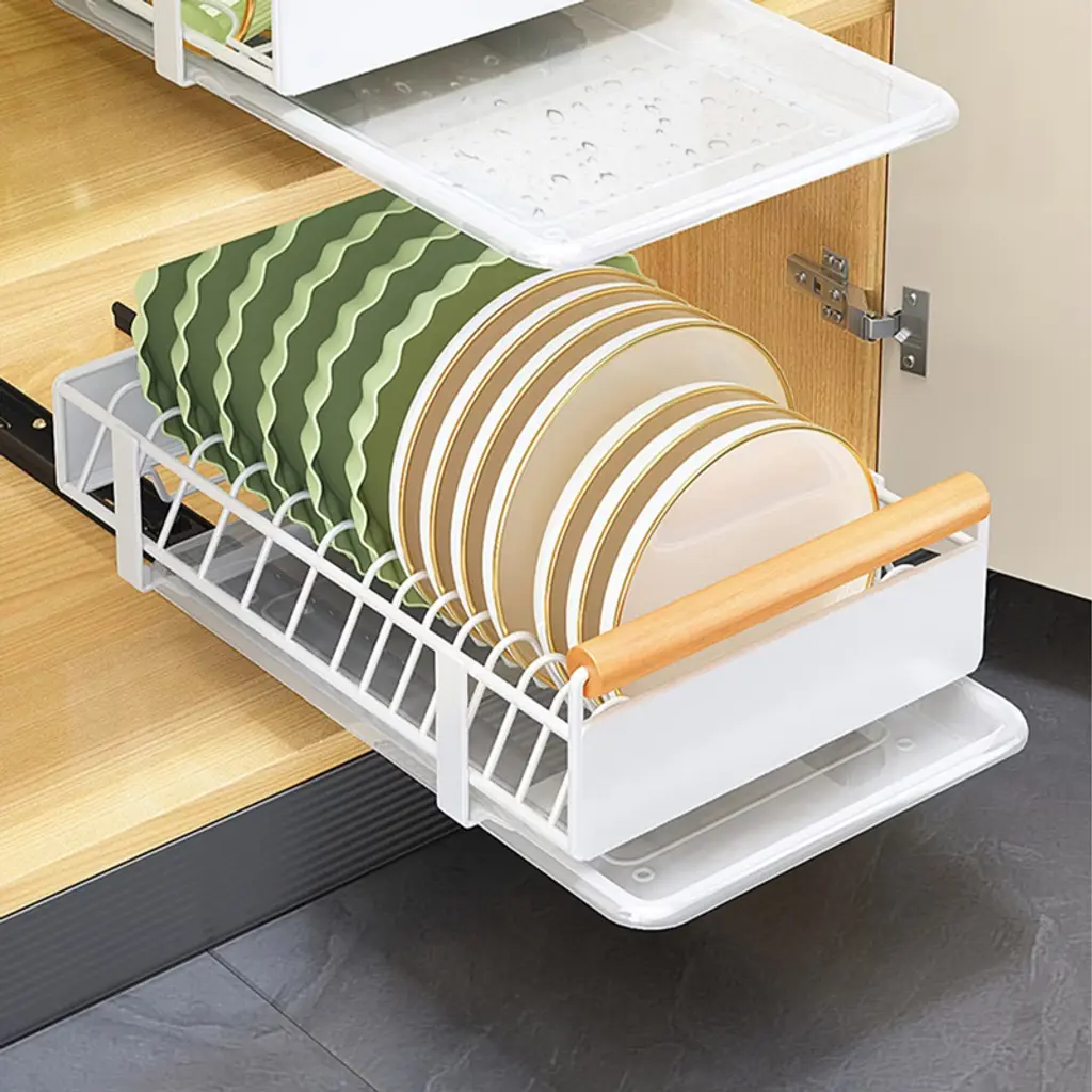 1Pcs Dish Drainer Rack Pull Out Drawer Plate Organizer Cabinet Slide Out Shelves For Kitchen Clutter Organization