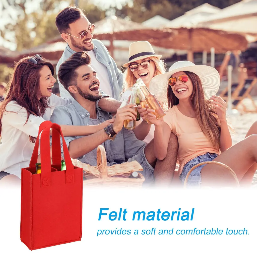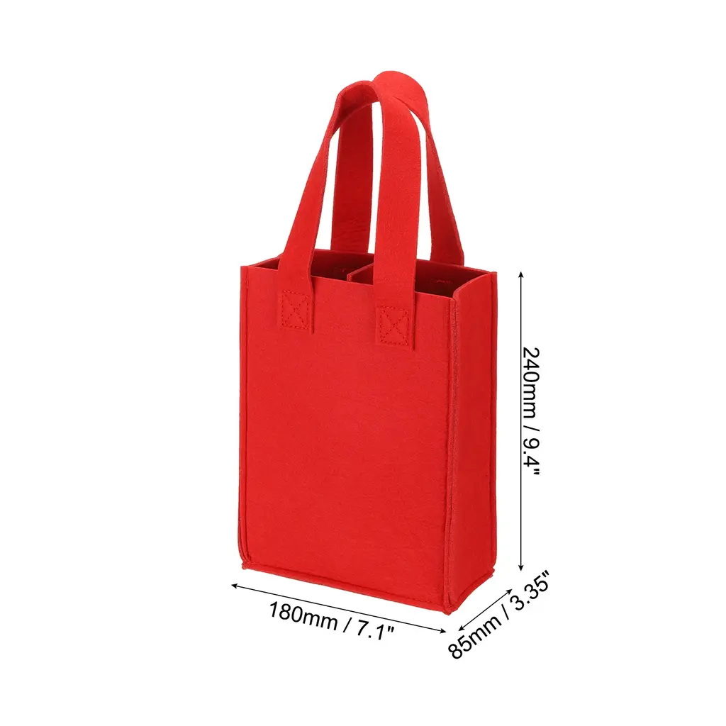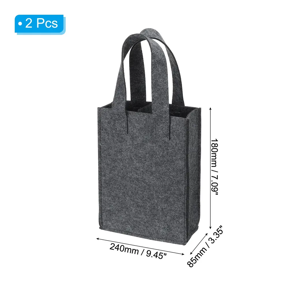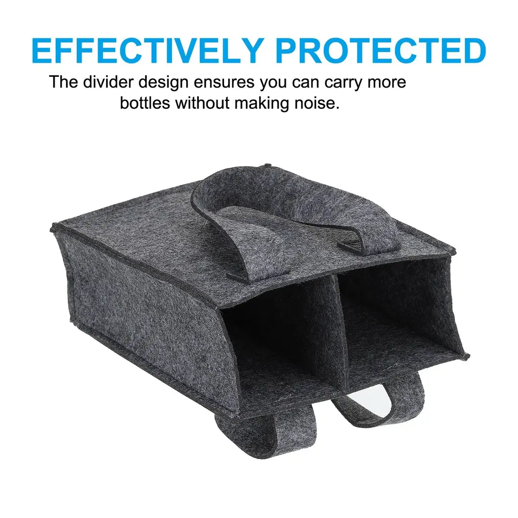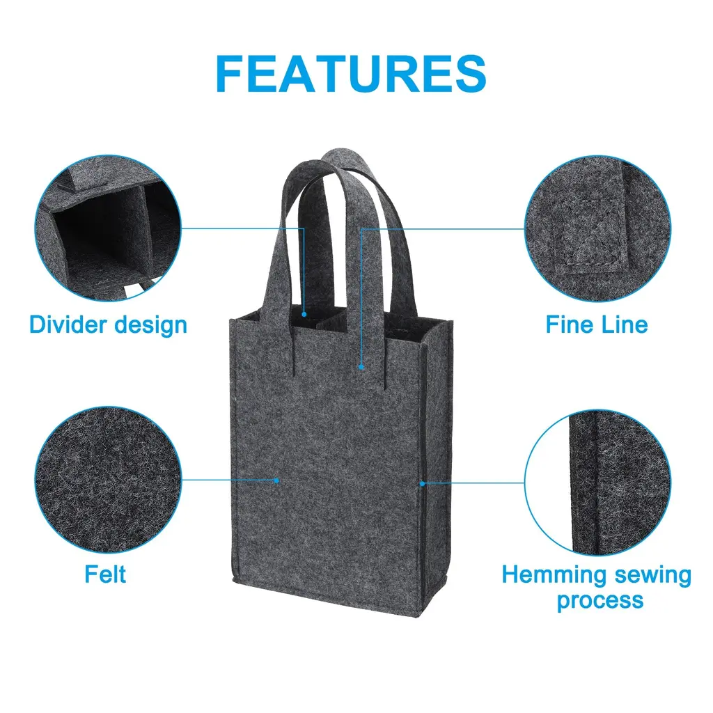 It is used to store the wine bottle and provides a secure and protective solution for transporting. Suitable for wine enthusiasts, travelers, or anyone in need of a reliable and stylish storage container. It is also a gift for family and friends at outdoor picnics, parties, weddings, birthdays, holidays, anniversary, or any special occasion.SpecificationColor: GreyMaterial: FeltSize: 240 x 85 x 180mm / 9.4 x 3.3 x 7.1 inch(L*W*H)Packing List: 1 x Wine Carrier ToteAdvantageThe thick and durable neoprene material acts as a cushion, preventing breakage. With a spacious interior that can accommodate standard-sized wine bottles. Its lightweight and compact design makes it easy to carry. The edge has a hemming sewing process, which is strong and durable. It is foldable when not in use to save space.InstructionPut the wine bottle vertically into the wine storage bag and pick it up with the handle. The divider design ensures you can carry more bottles without making noise. The soft and comfortable handles provide a secure and portable grip.NOTE: As well as holding a wine bottle, it can also store books, craft and knitting supplies, or other tools.