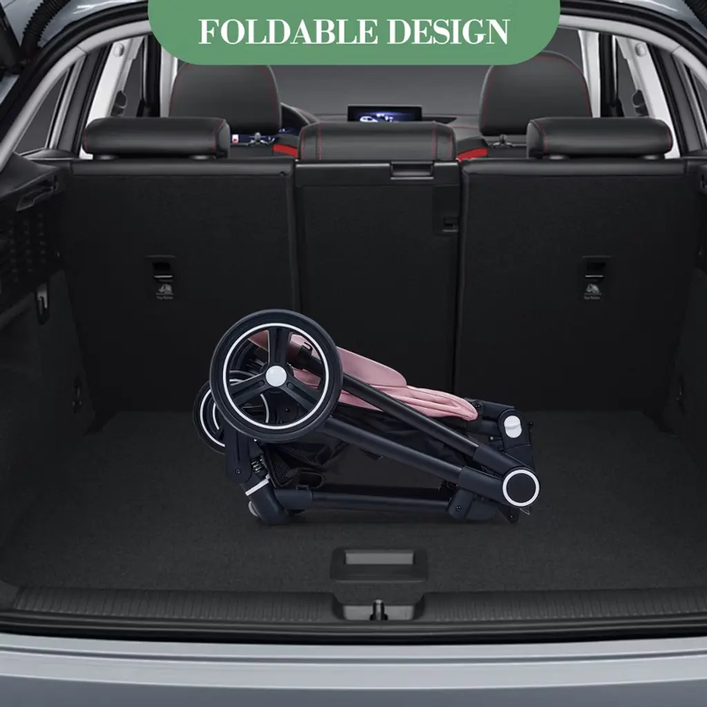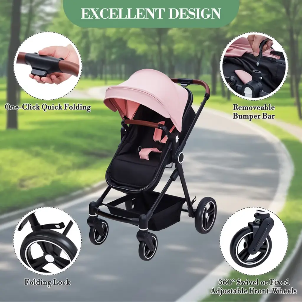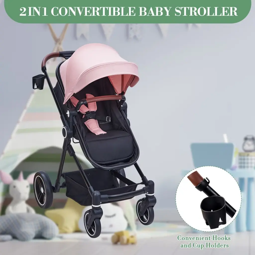 This innovative 2-in-1 stroller grows with your child, converting from a comfortable toddler stroller to a doll carriage with the removable seat. The lightweight aluminum frame features shock-absorbing wheels for smooth rides, while the 5-point safety harness keeps little ones secure. Parents will appreciate the oversized storage basket and convenient cup holder, making this perfect for walks, jogging, or pretend play. The adjustable canopy provides sun protection, and the compact fold allows for easy transport and storage.