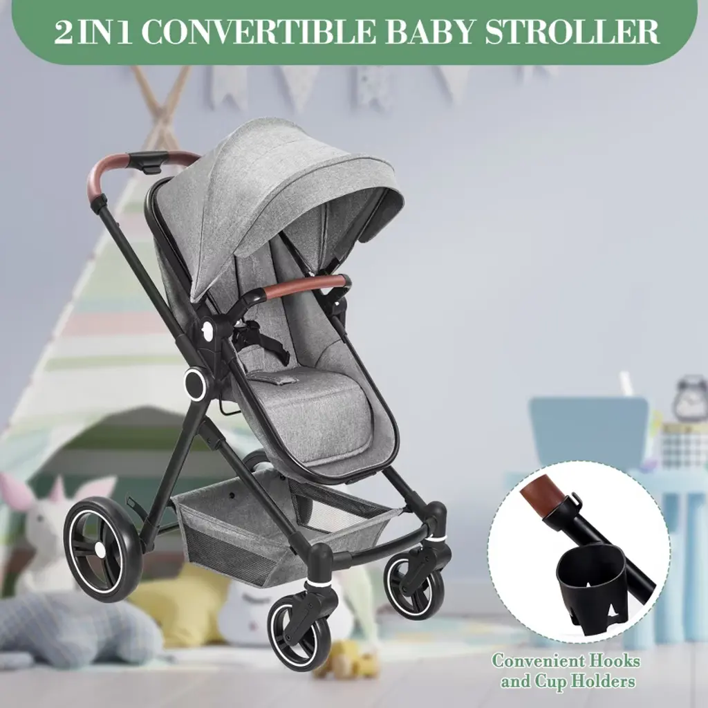 This innovative 2-in-1 stroller grows with your child, converting from a comfortable toddler stroller to a doll carriage with the removable seat. The lightweight aluminum frame features shock-absorbing wheels for smooth rides, while the 5-point safety harness keeps little ones secure. Parents will appreciate the oversized storage basket and convenient cup holder, making this perfect for walks, jogging, or pretend play. The adjustable canopy provides sun protection, and the compact fold allows for easy transport and storage.