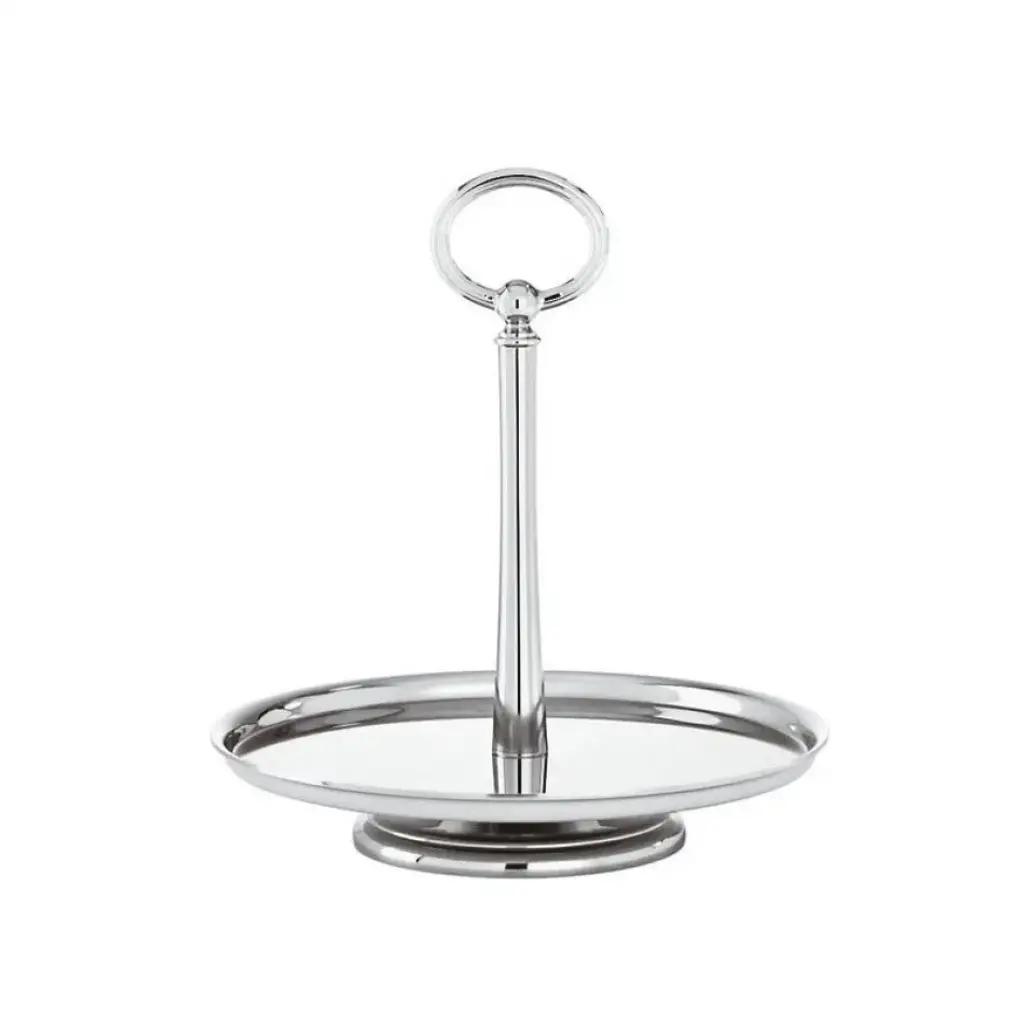 Adorn a birthday or wedding tablescape with the Eglinton Cake Standard. This charming two-tier stand is perfect for presenting sweet delicacies and savoury bites. Crafted from stainless steel and brass it features a nickel finish.