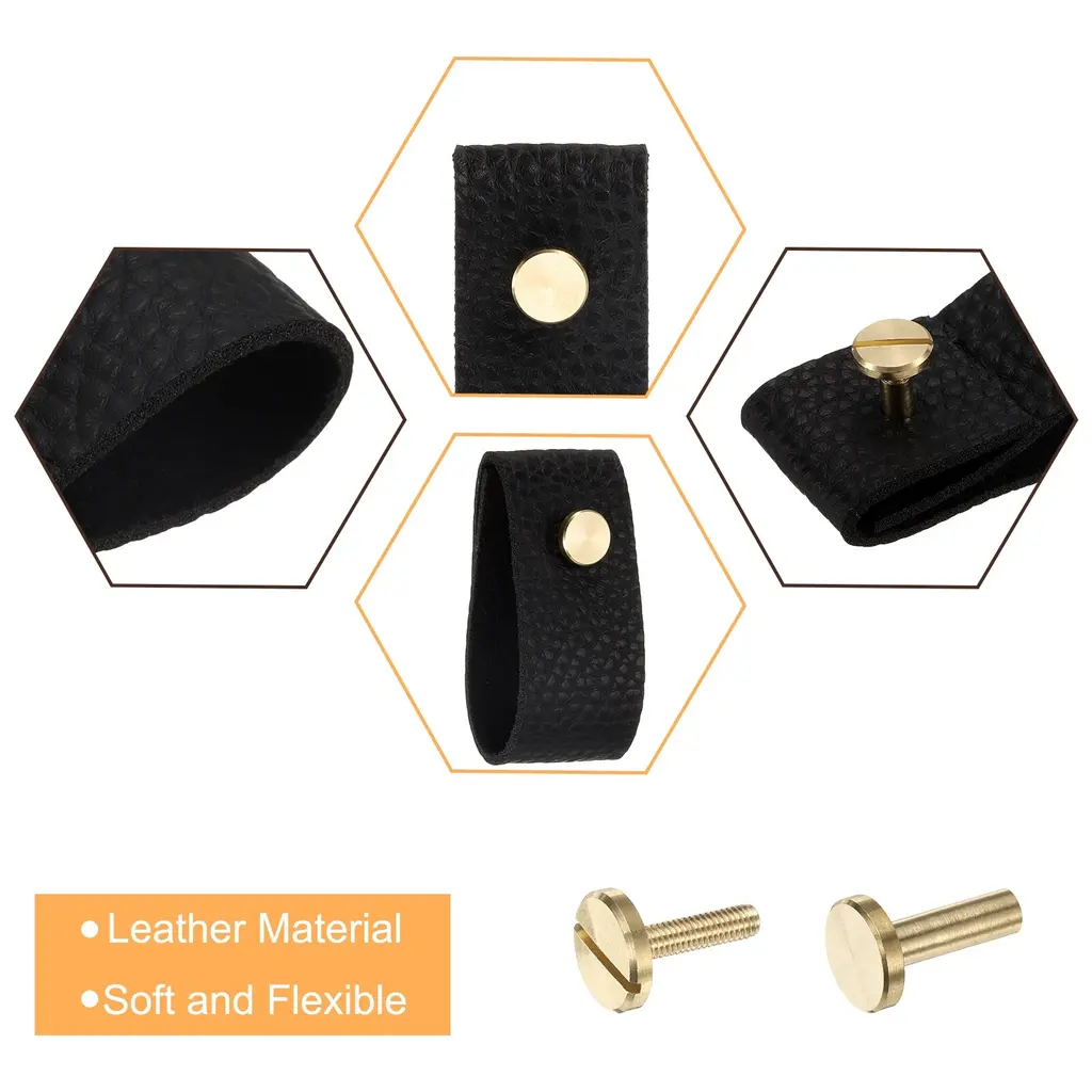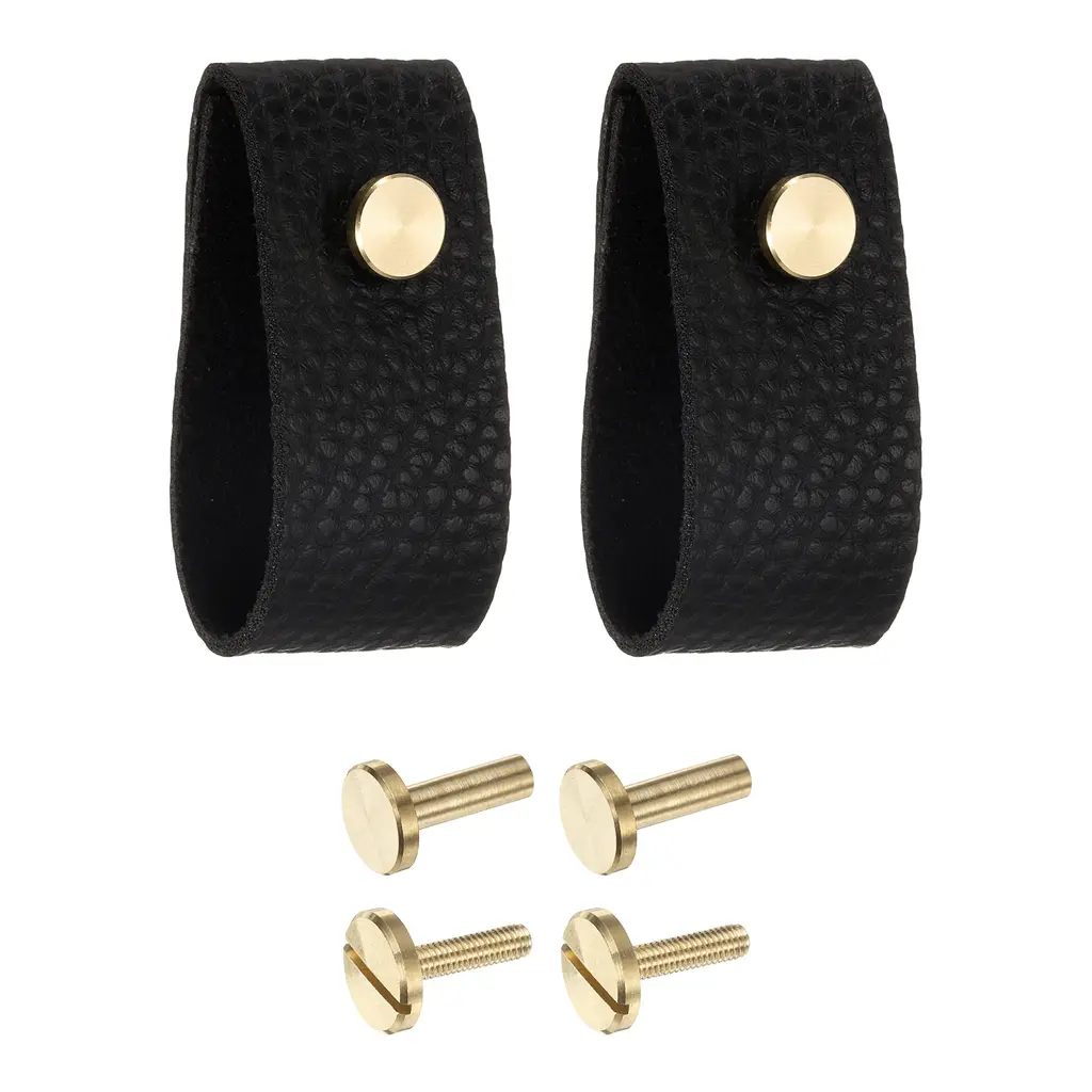 2 Pack Leather Drawer Pulls For Dresser Drawer, Kitchen Cupboard - Black