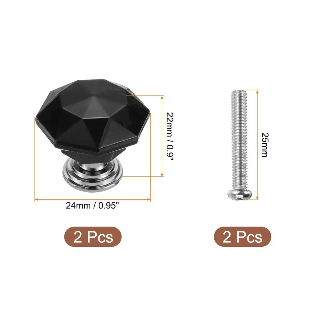 Descriptions:Acrylic and Metal Construction: The knobs are made from acrylic and zinc alloy material, not easy to fade, or rust, and are easy to clean, combining the elegance of crystal with the durability of metal, providing a long-lasting decorative element for furniture.Decorative and Functional: These drawer knobs not only serve a functional purpose by making it easier to open and close drawers but also have a crystal-like appearance that adds a touch of sophistication to any piece of furniture.Easy Installation: To install, screw the knobs into the pre-drilled holes on the drawers or closet doors, no special tools are typically required.Versatile Use: Great for use in various rooms such as bedrooms, bathrooms, and kitchens, these knobs can be used on dressers, wardrobes, cupboards, and closets to enhance the aesthetic appeal of the space.Careful Handling: When installing, ensure that the surfaces are clean and the holes are accurately drilled to prevent any damage to the knobs or the furniture. Specifications:Material: Acrylic, Zinc AlloyColor: Clear/SilverTotal Size: 24 x 22 mm / 0.95 x 0.9 inch (W*H)Screw Size: M4 x 25 mmPackage Contents:2 pcs x Knobs2 pcs x Screws