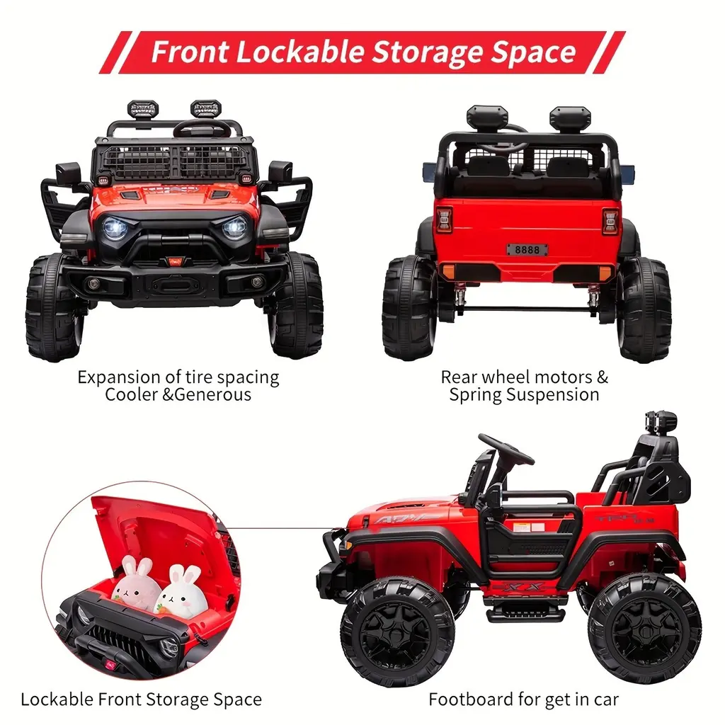 2 Seater Ride-On Truck, 20 Inch Large, Large Storage, Bottle Holder, Music, Speaker, Red - Red