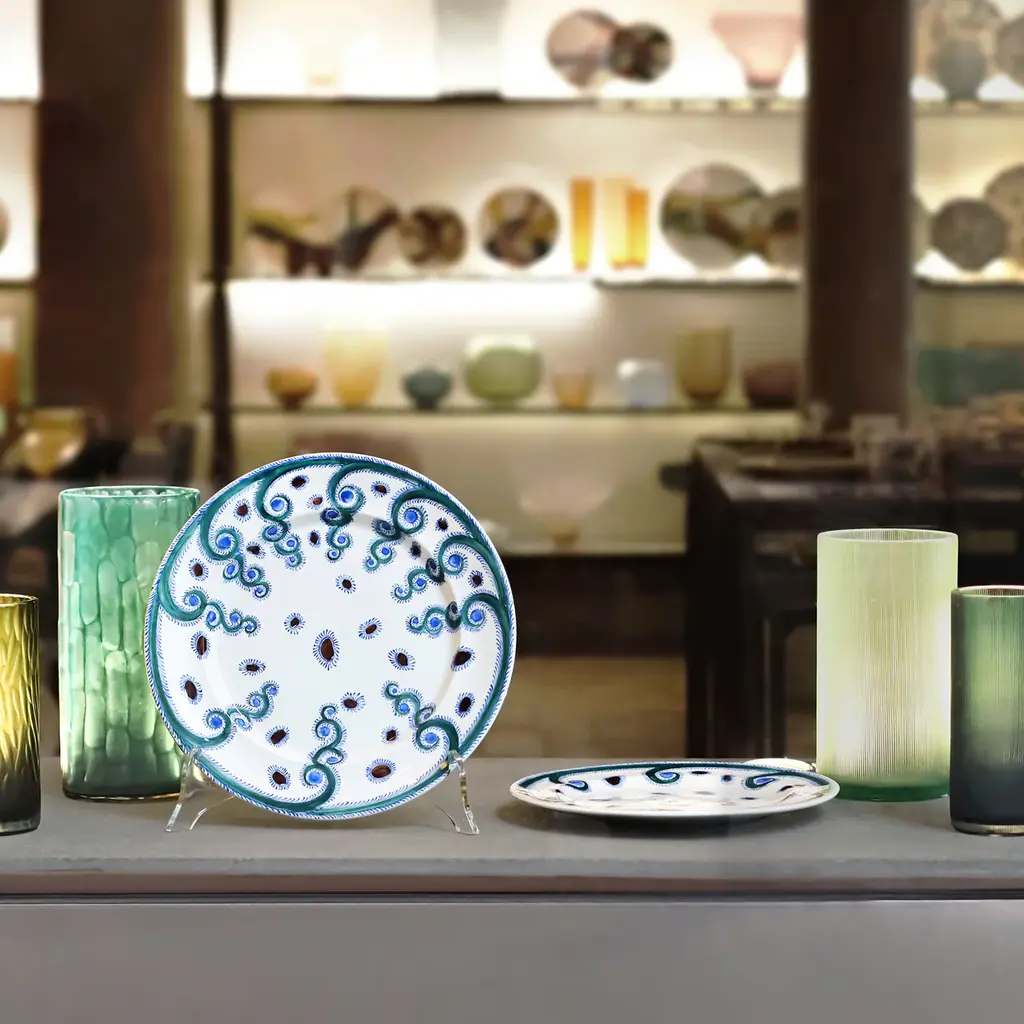 A series inspired by Anatolian culture, IZNIK has sinuous curves that seem to sprout from the edge of the plate, bringing to life magical gardens of different shapes. Inspired by the great Ottoman ceramic tradition, these plates translate ancient Middle Eastern cultures into a contemporary key.