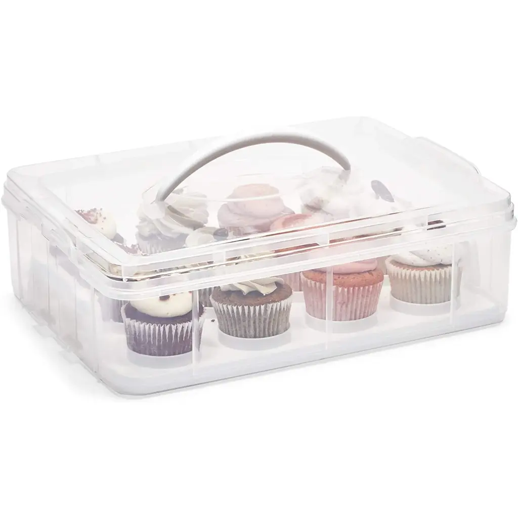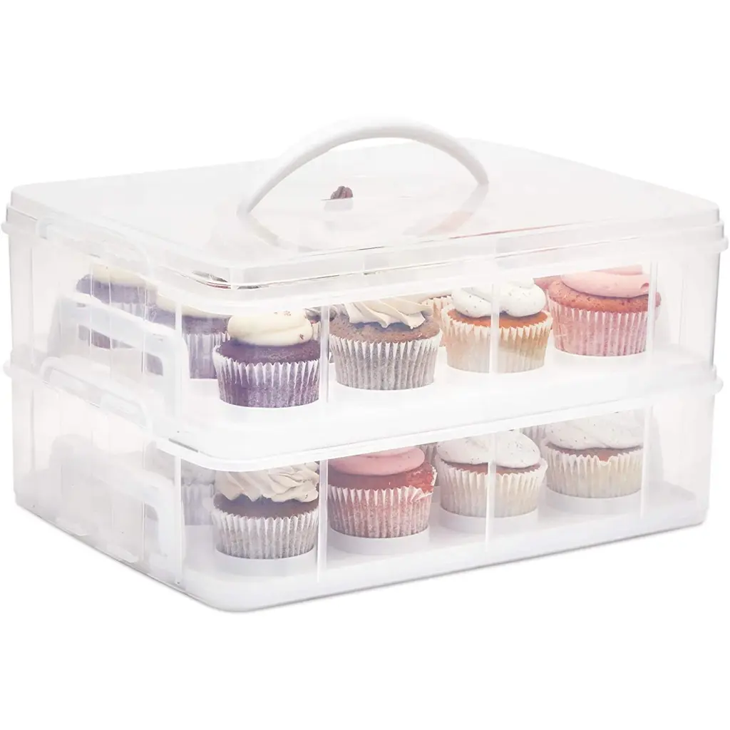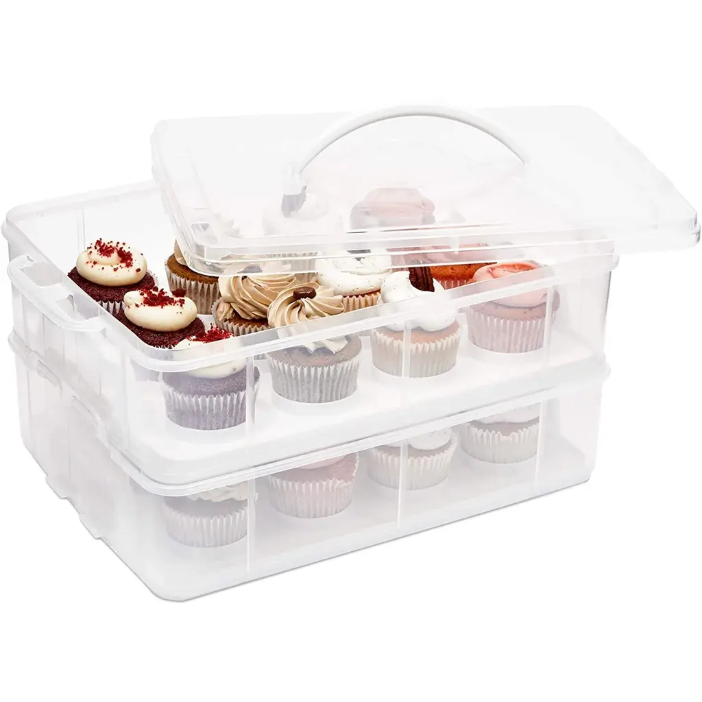 2 Tier Cupcake Carrier With Lid, Holds 24 Cupcakes (13.5 X 10.25 X 7.5 In) - Over 12 Pieces