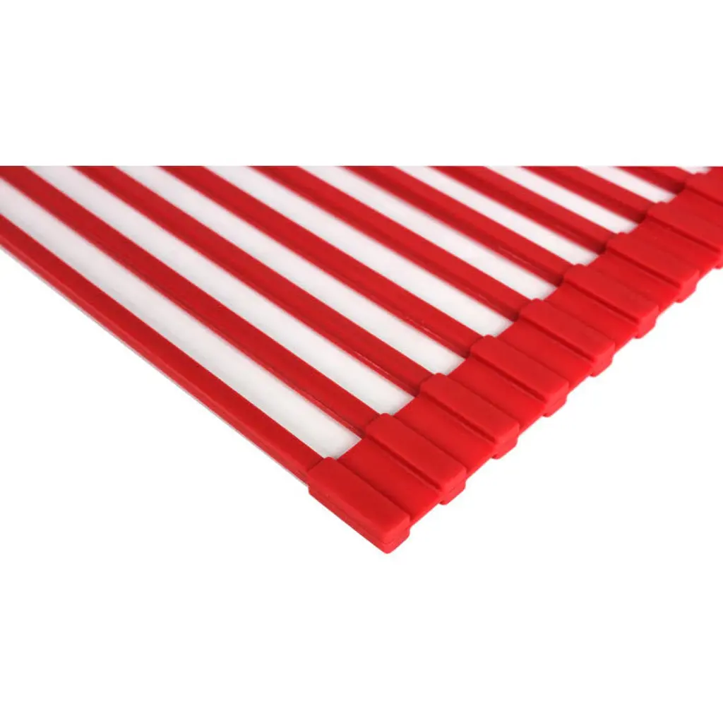 20-3/8 Inch Silicone Multipurpose Roll-Up Dish Rack For Stainless Steel Kitchen / Island / Bar Sinks - Red Silicone Dish Rack