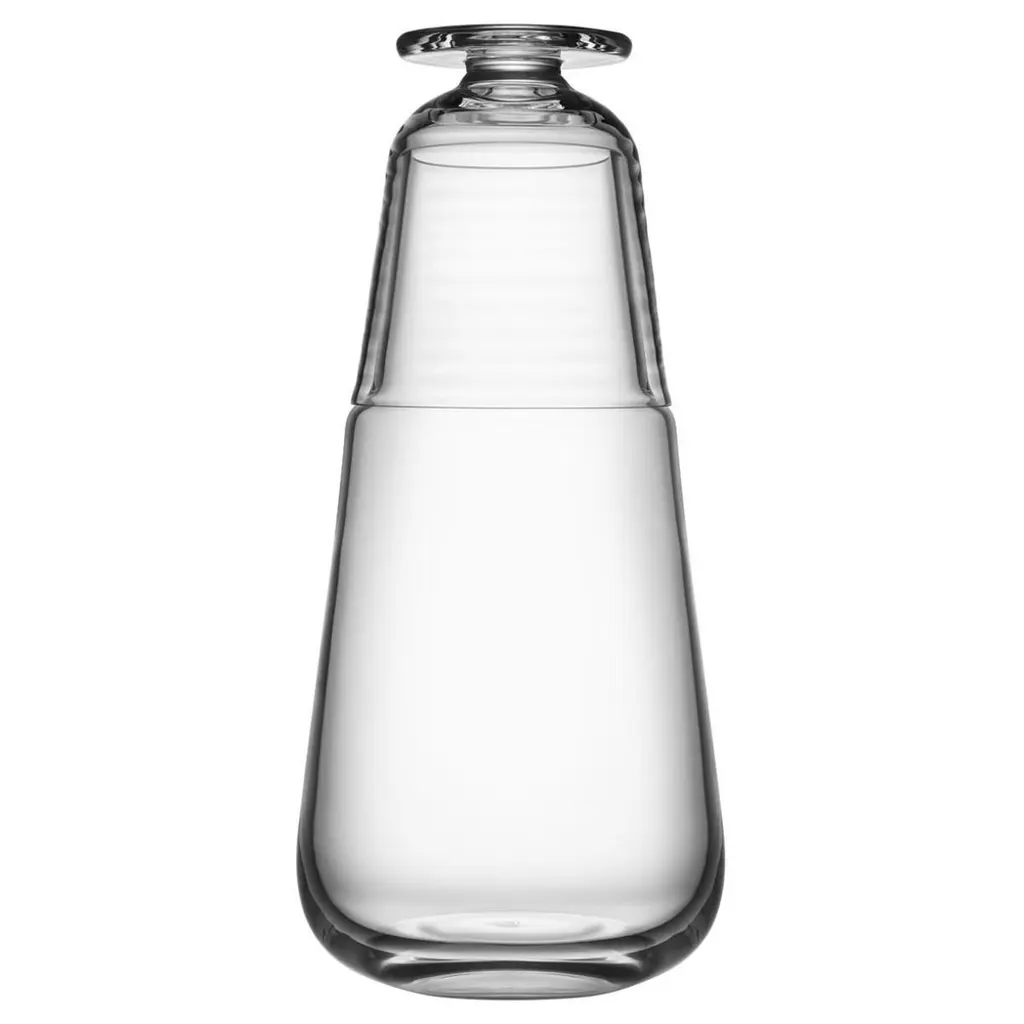 A timeless and versatile design created in 2007 by Carlo Moretti, this stunning piece can be used as a wine decanter or decorative vase. Graced by delicate tones of pink enriching its transparent flair, and completed with a pink ring-shaped decoration and a white base, its tapered silhouette is entirely handcrafted of mouth-blown Murano crystal. Signed and dated by Carlo Moretti, 2007.