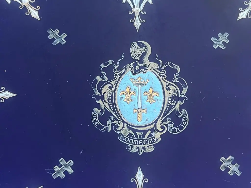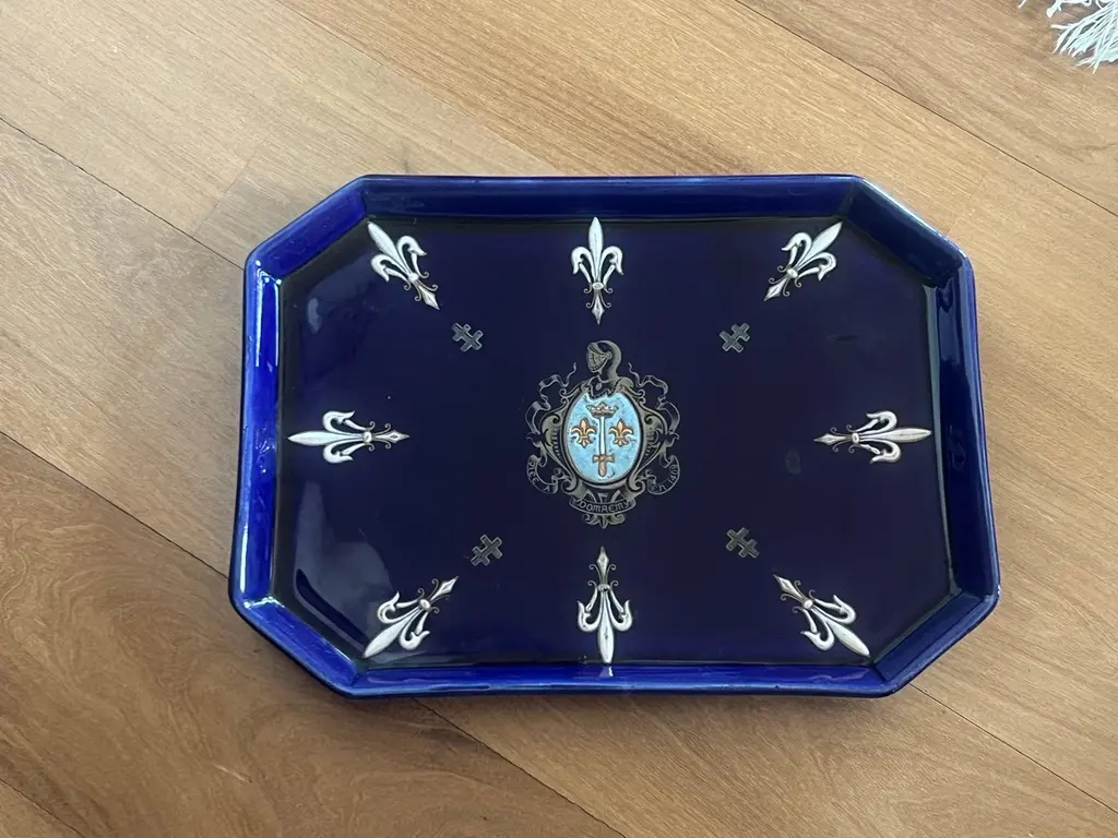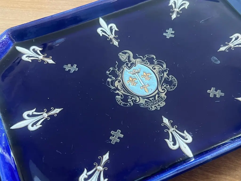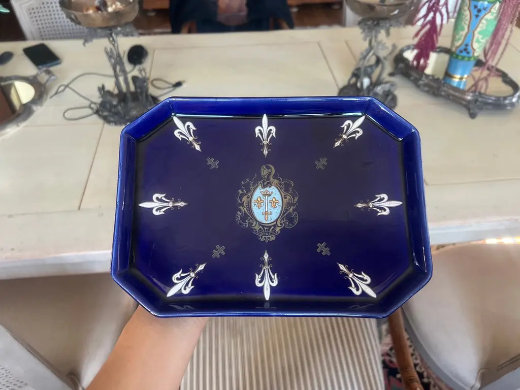 French handmade ceramic pieces in blue with hand made decoration.France, circa 1920