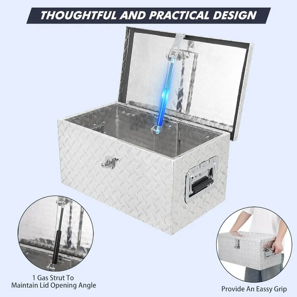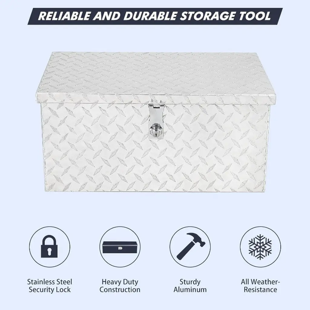 Your Tools Deserve a Home That Works As Hard As You Do That moment when you're knee-deep in a project and can't find your wrench? We've all been there. This 20" aluminum toolbox changes everything. Picture having your most-used tools right where you need them, protected from the elements, yet instantly accessible when time matters most. Built for professionals who can't afford downtime, this isn't just storage - it's your mobile workshop. The diamond plate aluminum construction laughs off what would dent cheaper boxes: bouncing down backroads, blazing sun, or that accidental drop off the truck bed. Yet at just 18 pounds, it won't weigh down your rig.