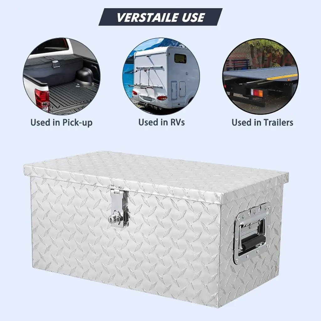 20x12x10 Inch Diamond Plate Tool Box, Underbody Truck Storage With Lock, Aluminum Organizer For Pickups, Trailers & Rvs