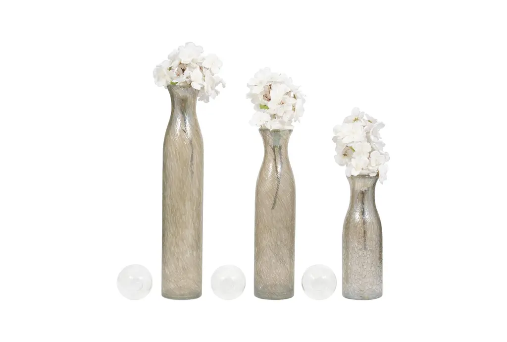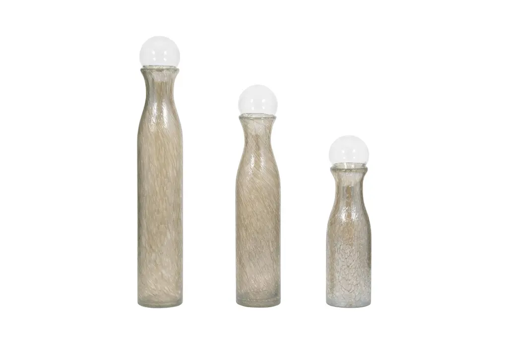 22" Grey Kelis Lidded Glass Bottles Glass 3 Piece Set