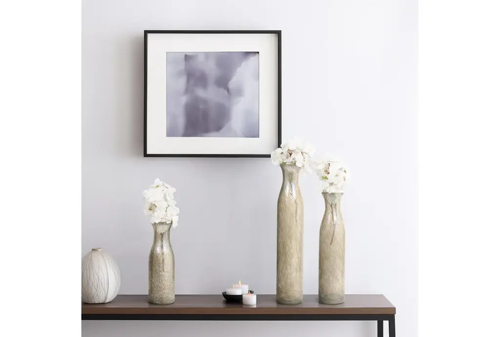 Enhance your home decor with the 22" Grey Kelis Lidded Glass Bottles 3 Piece Set. These stylish bottles feature a soft grey color that complements any modern or contemporary space. The textured detailing adds a touch of sophistication to your decor.