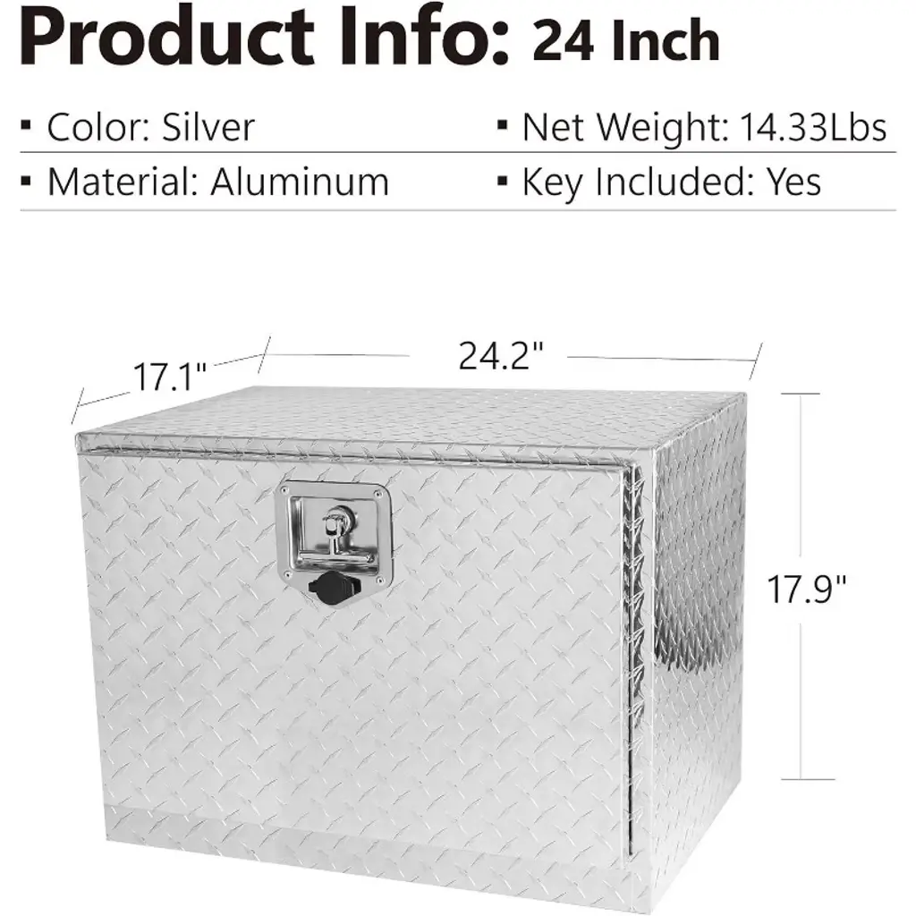 Your Tools Deserve This Level of Protection - Built for the Working Professional Imagine you're on a remote job site when a sudden storm rolls in. While others scramble to cover their tools, yours stay completely dry inside this 24" aluminum toolbox—its triple-layer seals locking out rain and road spray, while the industrial-strength lock keeps everything secure. That's the peace of mind that comes with professional-grade storage. Designed for contractors, landscapers, and outdoor workers who demand reliability, this isn't just another metal box. The marine-grade aluminum construction stands up to what destroys cheaper boxes—coastal salt spray, desert heat, or years of rough job site use. The low-profile design tucks neatly under your truck or trailer without reducing ground clearance, yet provides 17.9" of vertical storage for power tools and equipment.