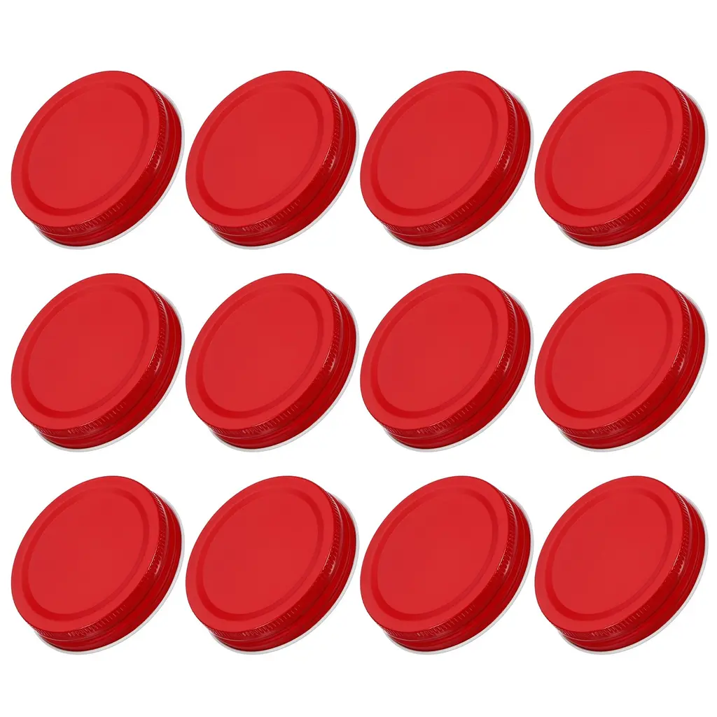 Description:Material - Constructed from a thin steel plate as the substrate, tin plated on its surface, and multi-protective films(layers). With corrosion resistance, odorless, glossy surface, lightweight, and strong adaptability to ambient temperature.Airtight & Leakproof - Designed to fit standard mouth mason jars. Our jar lid has a gasket which can improve the sealing of the lid, keep food fresh longer, make it not easy to leak, and prevent bad odors.Vertical Stripe Design - Concave-convex design with vertical stripes to increase friction between palm and lid, and facilitate opening and closing.Washable & Reusable - The canning lid is washable and suitable for the dishwasher. Please wash the lids before use and it is better to dry to store them as soon as possible, in order to extend service life and not easy to rust.Wide Applications - Commonly apply on mason jars for dry or liquid sealing and storing, such as grains, sugar, flour, juice, fruits, salad, sauces, spices, jams, etc. As well as for making DIY projects, seasoning caps, handmade decorative chandeliers, small items storage and more.Specification:Material: Tin PlateColor: RedInner Diameter: 70mm/2.76-inchLid Height: 15mm/0.59-inchPackage Contents:24 Pcs x Mason Jar Lids