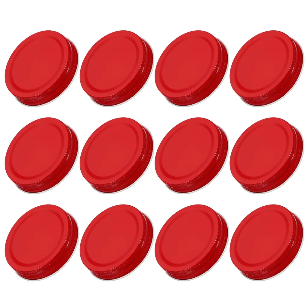 Description:Material - Constructed from a thin steel plate as the substrate, tin plated on its surface, and multi-protective films(layers). With corrosion resistance, odorless, glossy surface, lightweight, and strong adaptability to ambient temperature.Airtight & Leakproof - Designed to fit standard mouth mason jars. Our jar lid has a gasket which can improve the sealing of the lid, keep food fresh longer, make it not easy to leak, and prevent bad odors.Vertical Stripe Design - Concave-convex design with vertical stripes to increase friction between palm and lid, and facilitate opening and closing.Washable & Reusable - The canning lid is washable and suitable for the dishwasher. Please wash the lids before use and it is better to dry to store them as soon as possible, in order to extend service life and not easy to rust.Wide Applications - Commonly apply on mason jars for dry or liquid sealing and storing, such as grains, sugar, flour, juice, fruits, salad, sauces, spices, jams, etc. As well as for making DIY projects, seasoning caps, handmade decorative chandeliers, small items storage and more.Specification:Material: Tin PlateColor: RedInner Diameter: 70mm/2.76-inchLid Height: 15mm/0.59-inchPackage Contents:24 Pcs x Mason Jar Lids