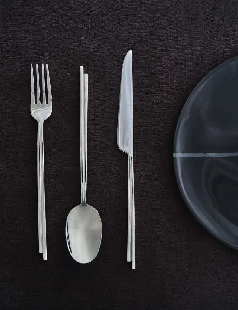 Kelly Wearstler has forged a global luxury lifestyle brand with an eye for vibrant design. The celebrated interior designer brings her soulfully sophisticated style to the table in this latest collaboration with Belgian design firm Serax, whose reputation for the exceptional makes the perfect match. This flatware set features a split stem, offset for maximum effect. Each piece is cast and hand polishedwith a stainless steel finish for everyday elegance.