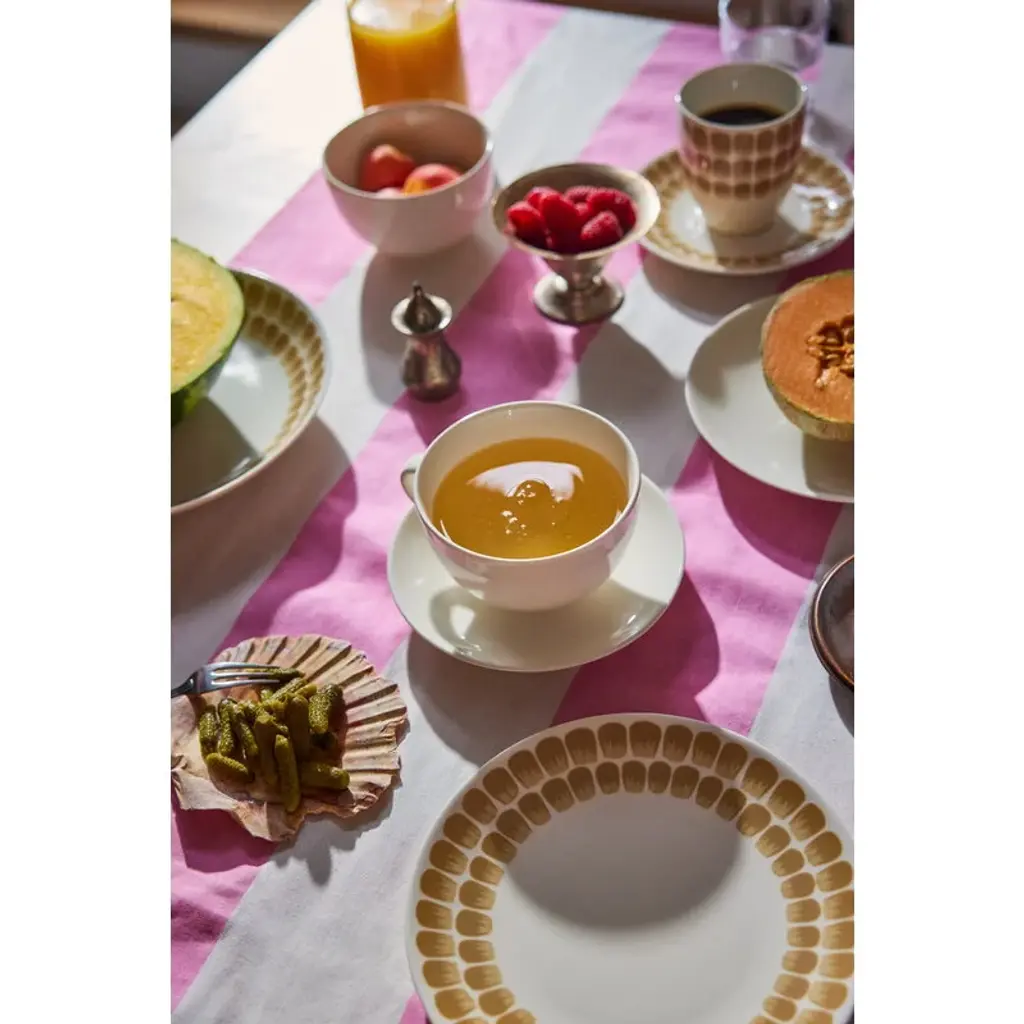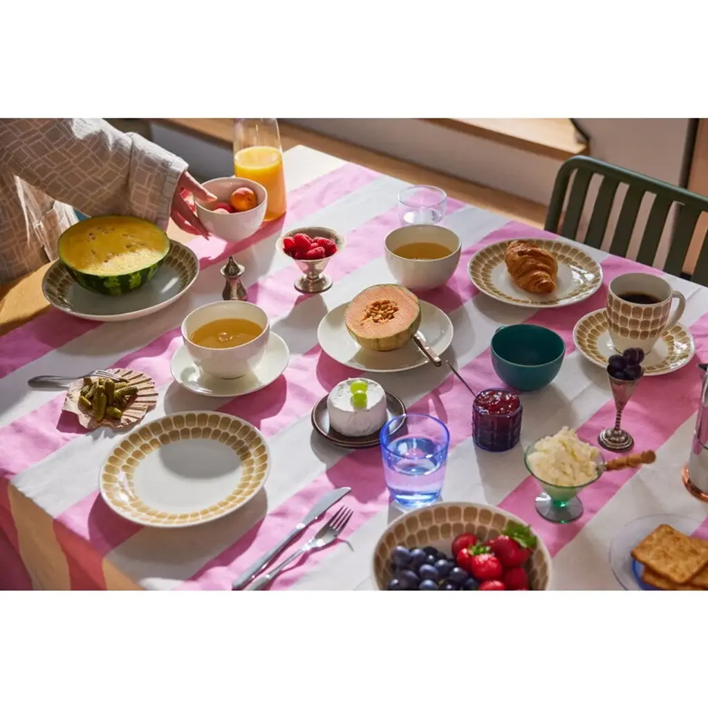 Arabia's Tuokio plate has a clean and simple design that makes the plate a versatile addition to many table settings. Whether it's a casual breakfast or a special occasion, the Tuokio plate complements different situations effortlessly. With a diameter of 7.87 x 0 in (20 x cm, cm), the plate offers an elegant backdrop for appetizers, starters and small salads, for instance. The 24h Tuokio tableware range is based on the popular 24h series from Heikki Orvola and the Tuokio decoration is by Helorinne & Kallio. Originally designed by designer Heikki Orvola for his own use, 24h found its way to the Arabia assortment in 1996. Finnish designer duo Helorinne & Kallio were given a brief to get inspired by Arabia’s strong ceramic pattern-making tradition and to make a fresh pattern suited for today’s consumers. They found inspiration for the Tuokio pattern from Arabia’s strong expertise in ceramics and took advantage of the opportunity to learn from the best professionals in the field at the Arabia factory.