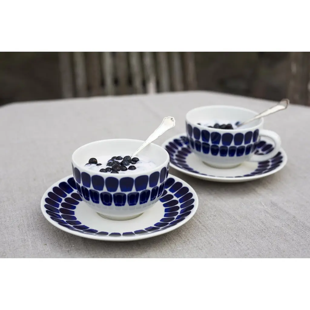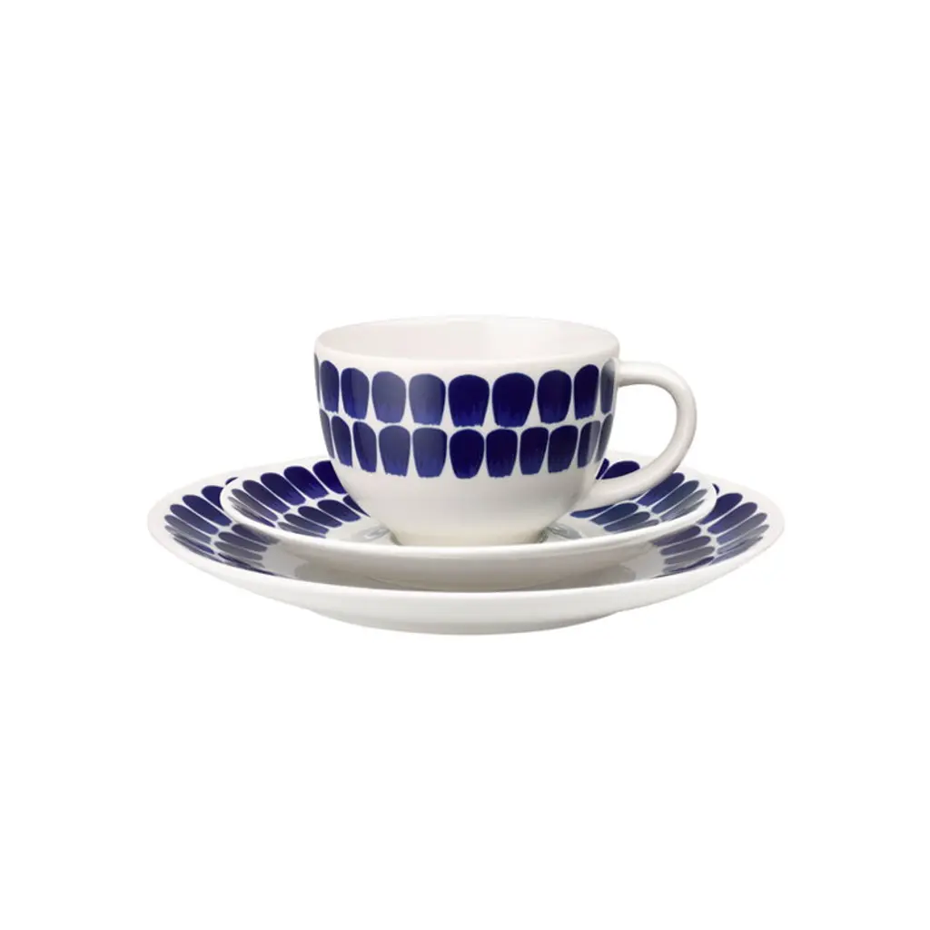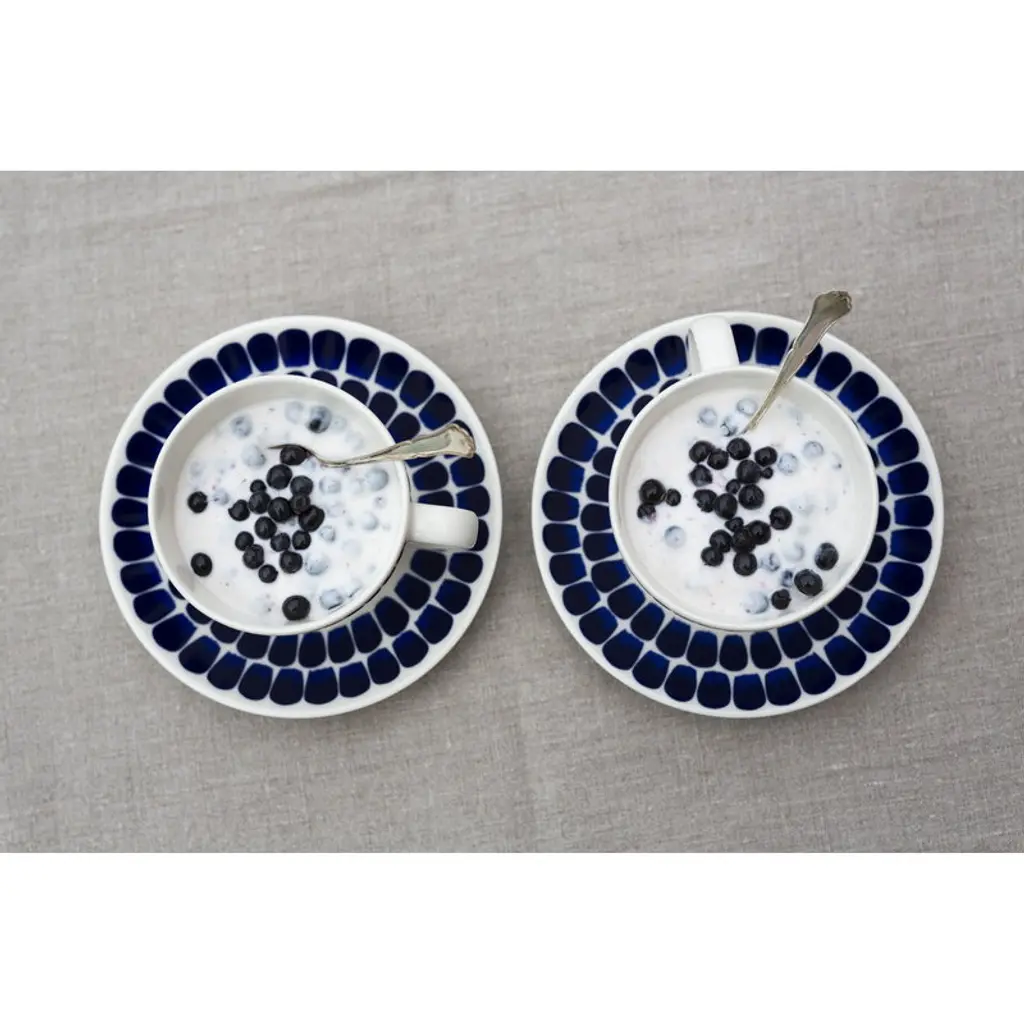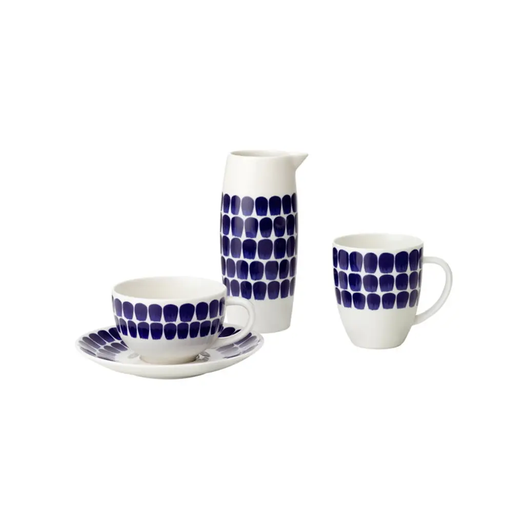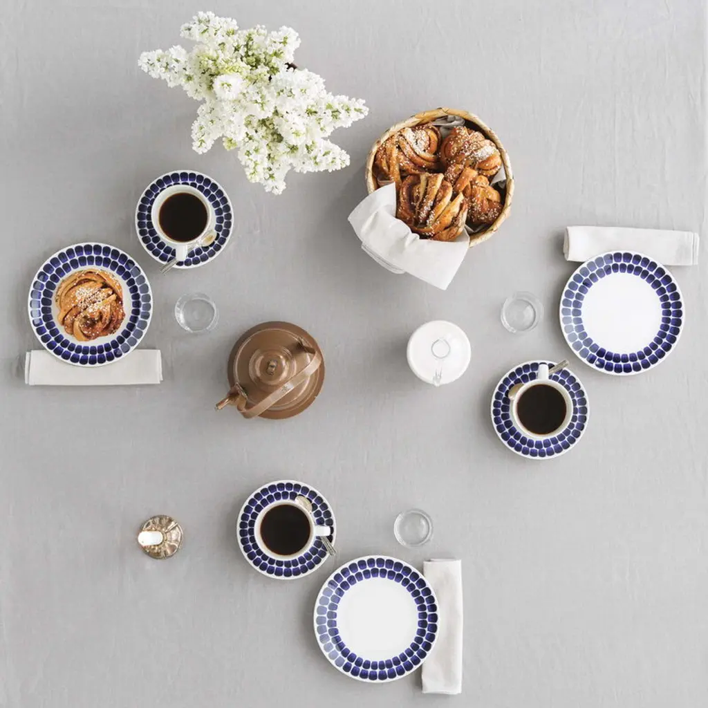 24h Tuokio tableware range is based on the popular 24h series from Heikki Orvola and the decoration is by Helorinne & Kallio. Originally designed by designer Heikki Orvola for his own use, 24h found its way to Arabia assortment in 1996. Finnish designer duo Helorinne & Kallio were given a brief to get inspired by Arabia’s strong tradition in ceramic pattern making and to make a fresh pattern suited for today’s consumers. They found inspiration for Tuokio from Arabia’s strong expertise in ceramics and took advantage of the opportunity to learn from the best professionals in the field at the Arabia factory.