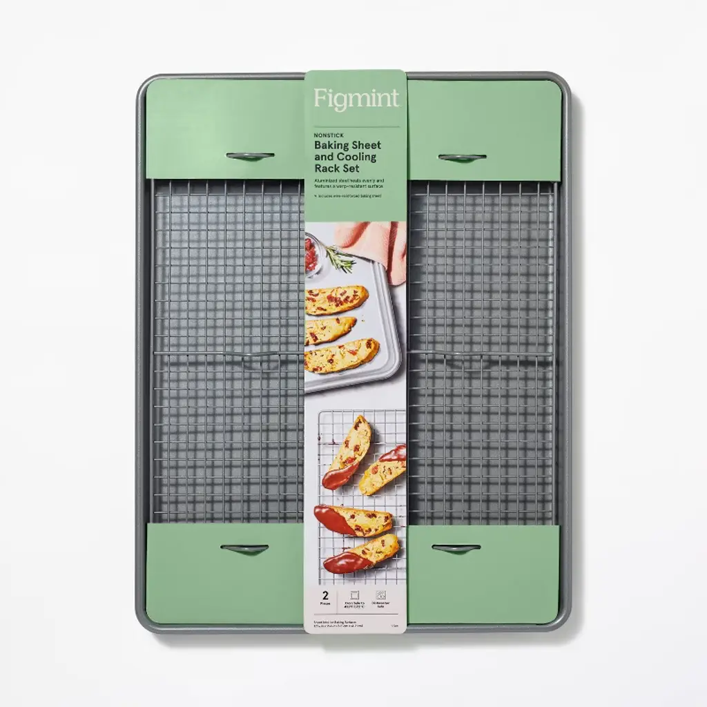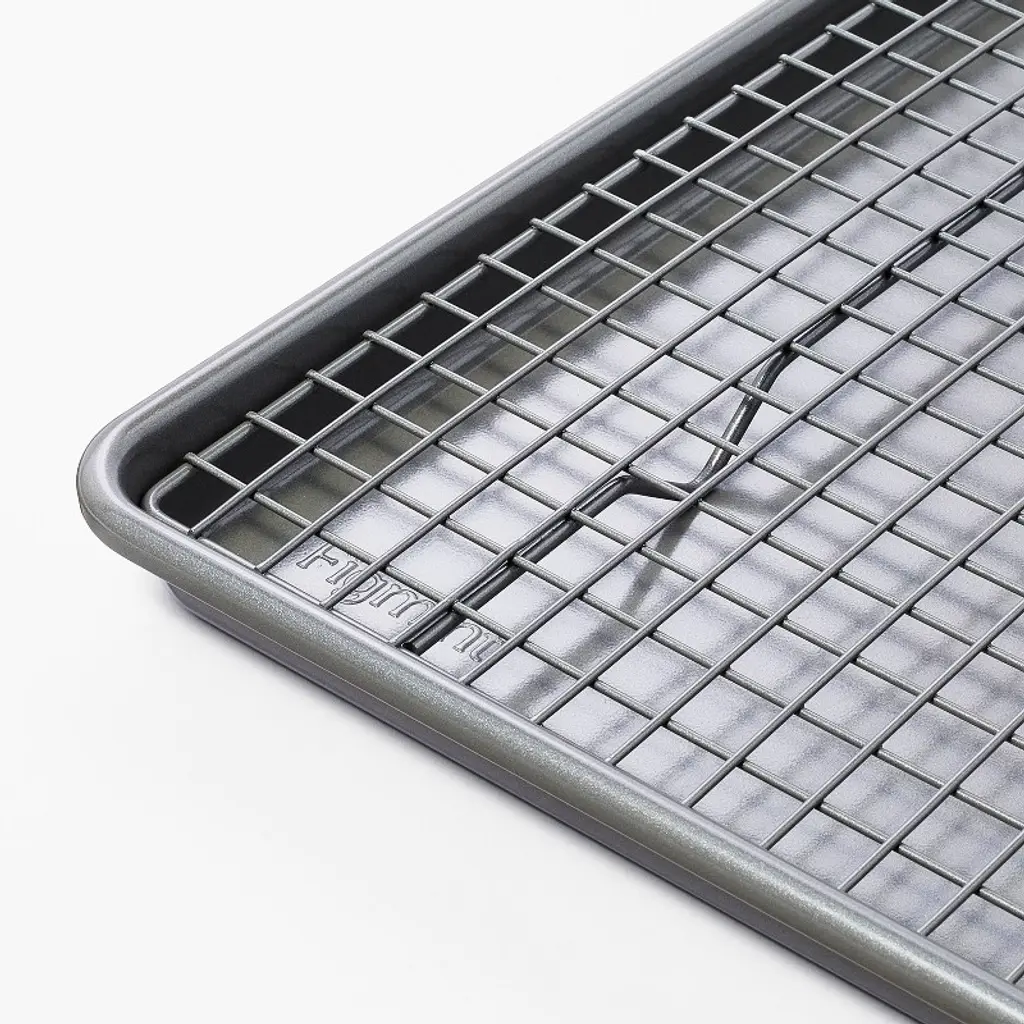 2Pc Nonstick Baking Sheet And Cooling Rack Set Gray - Figmint™: Wire Rack, Oven Safe, Dishwasher Safe, Kitchen Bakeware