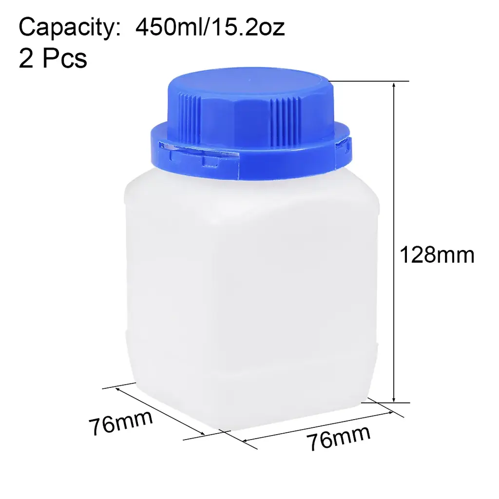 2X Plastic Lab Reagent Bottle Sample Sealing Liquid Storage Container - Translucent, Blue - 750ml/25.4oz