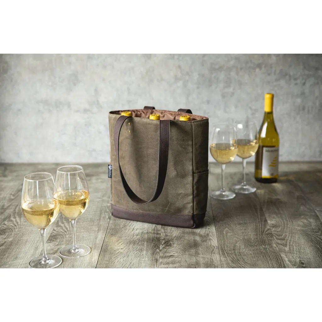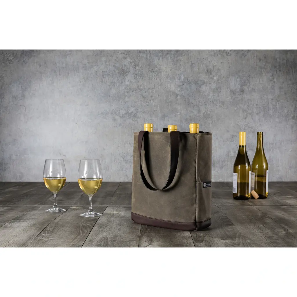 3 Bottle Insulated Wine Cooler Bag - Khaki Waxed Canvas - N/a - Khaki