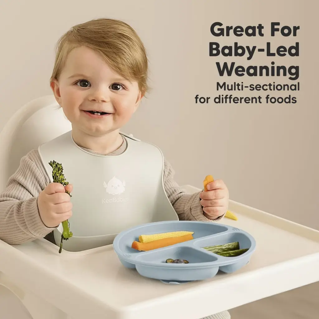 KeaBabies Prep Silicone Plates with lids are designed for enjoyable, independent and mess-free eating. Made from 100% food-grade silicone, these BPA-free kids plates are dishwasher-safe. The strong suctions keep baby plates securely attached to most high chairs tables. Easily remove by lifting tabs. Form a feeding essential set with our Prep Silicone Bowls and Prep Lil Forks & Spoons.