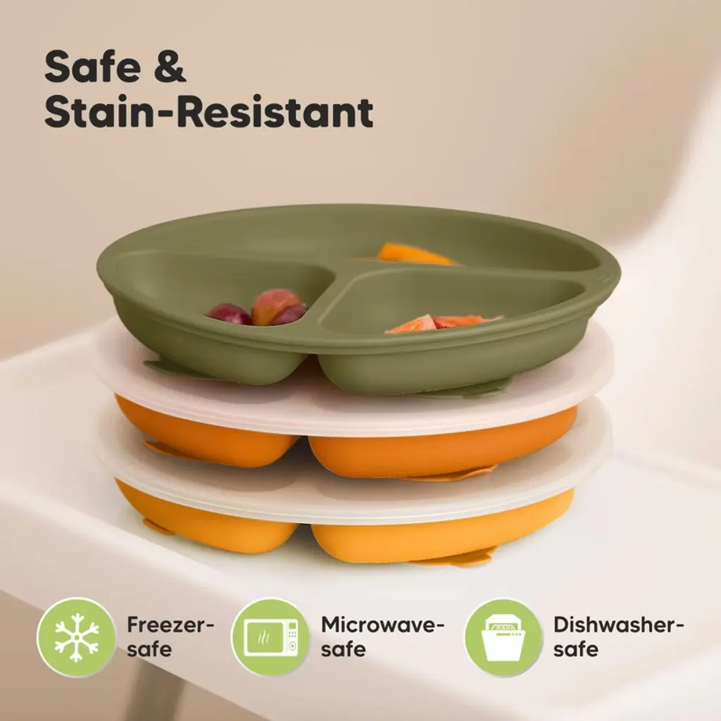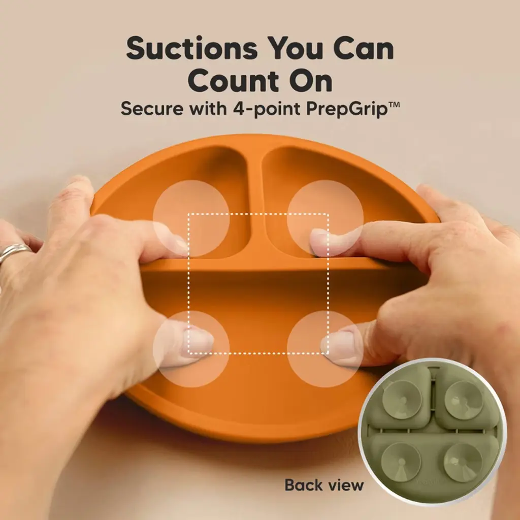 KeaBabies Prep Silicone Plates with lids are designed for enjoyable, independent and mess-free eating. Made from 100% food-grade silicone, these BPA-free kids plates are dishwasher-safe. The strong suctions keep baby plates securely attached to most high chairs tables. Easily remove by lifting tabs. Form a feeding essential set with our Prep Silicone Bowls and Prep Lil Forks & Spoons.