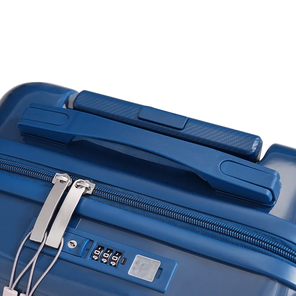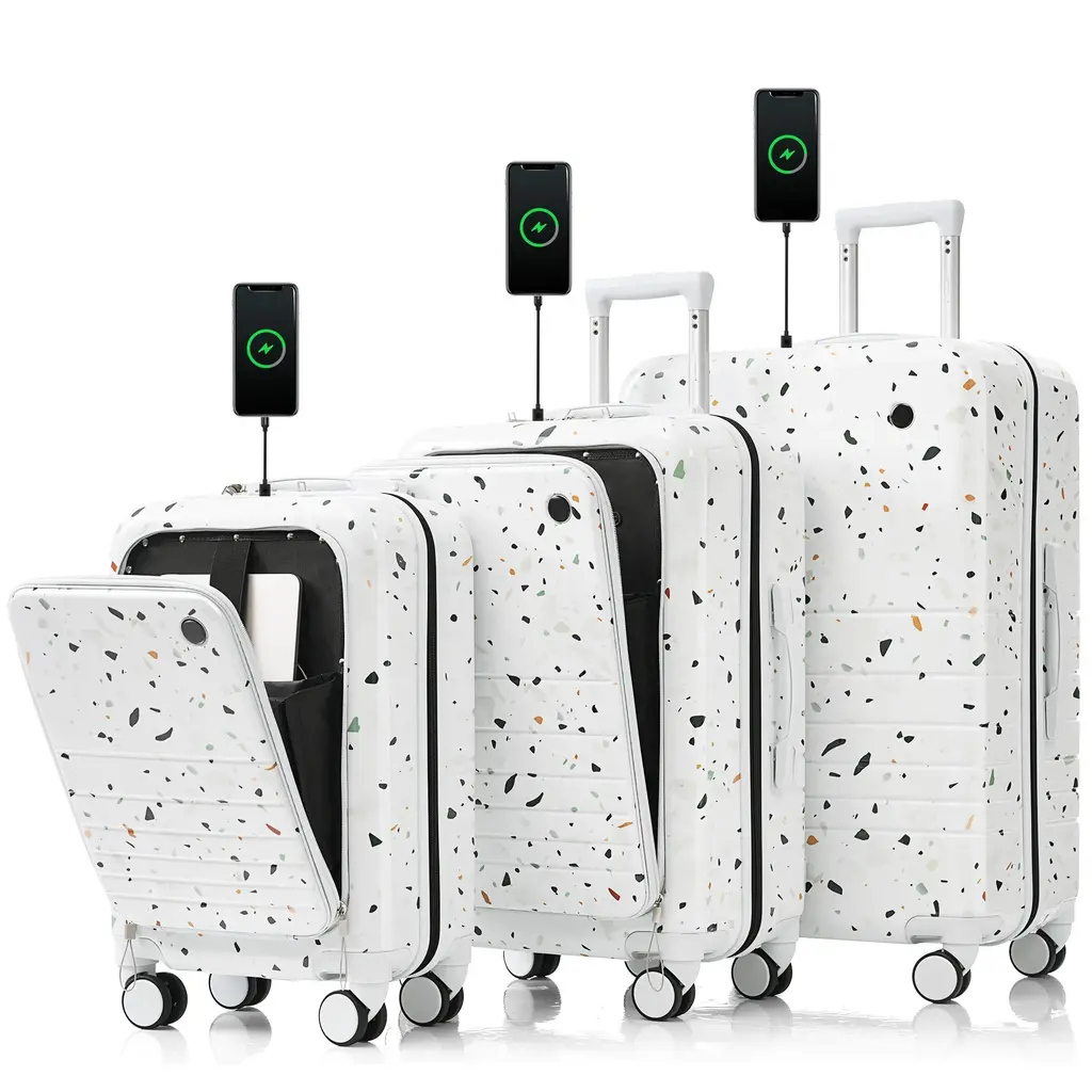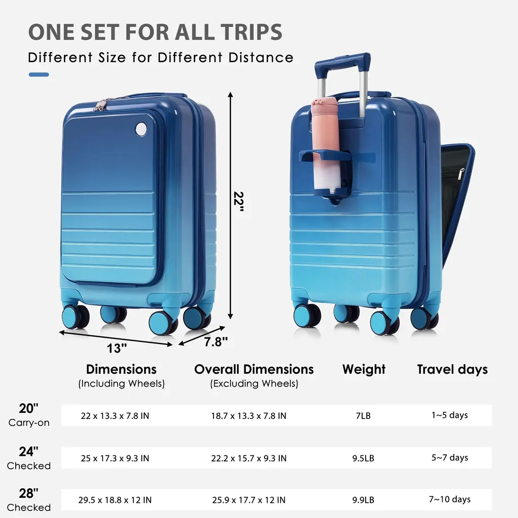 3 Piece High Quality Abs+pc Hard Carry On Suitcase With Usb Port And Cup Holder & Spinner Wheels, For Men Women Travel - Blue