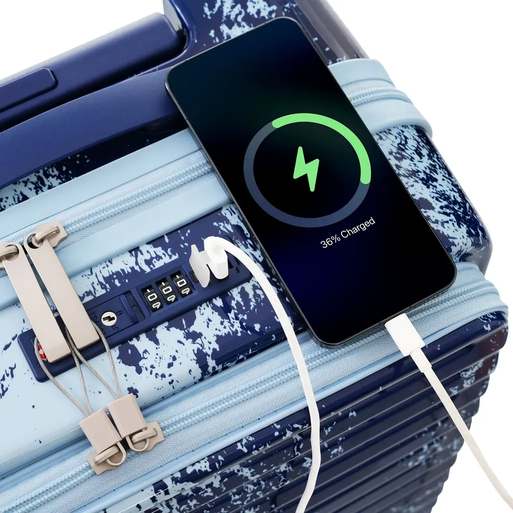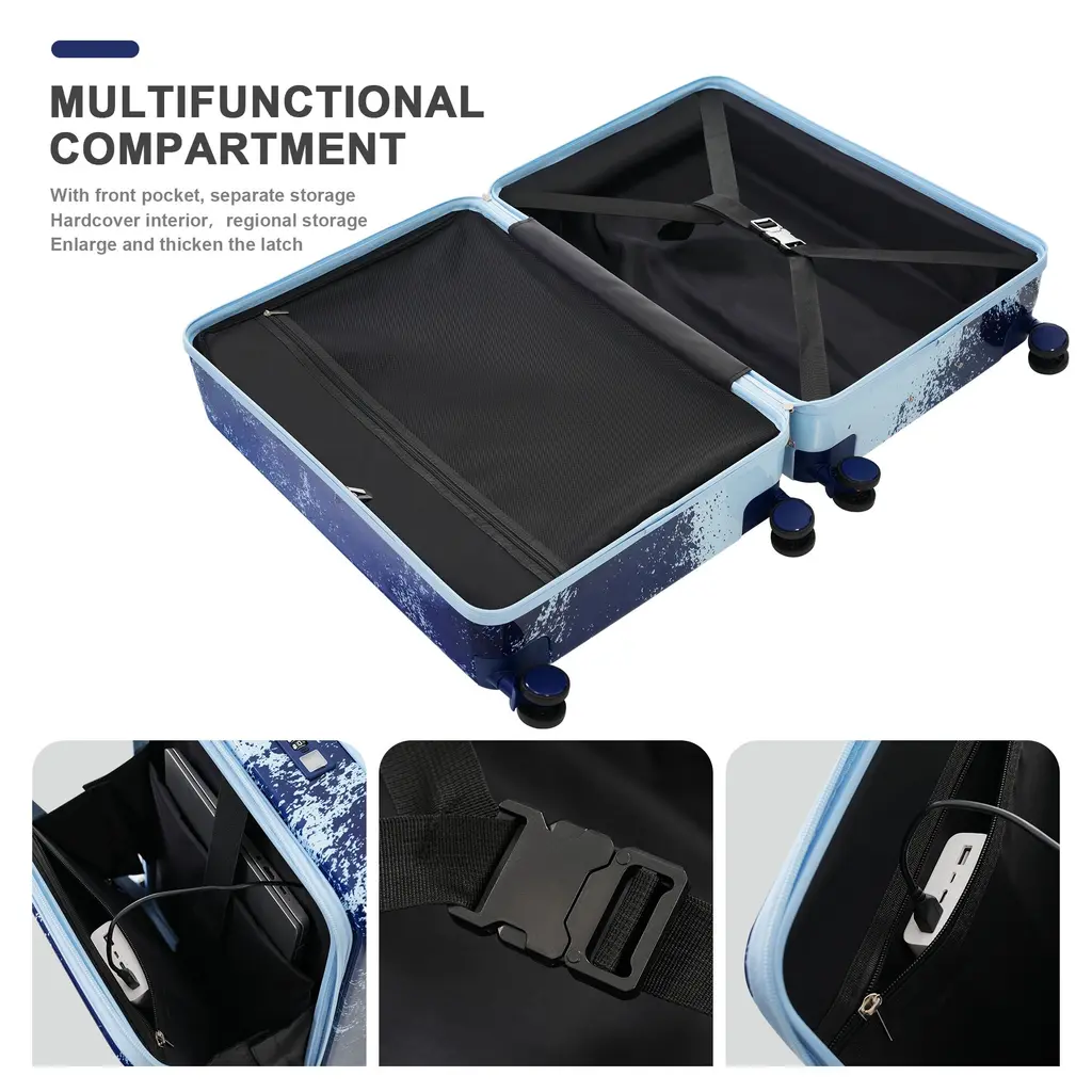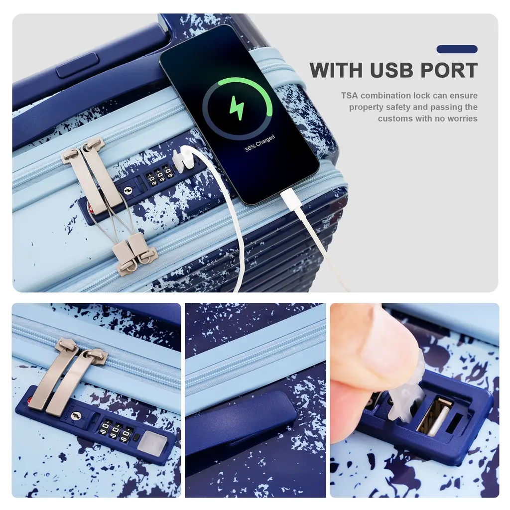 3 Piece Luggage Sets Expandable Suitcases With Front Pocket, Tsa Lock Usb Interface And Universal Wheel & Cup Holder - Beige+blue,white+indigo