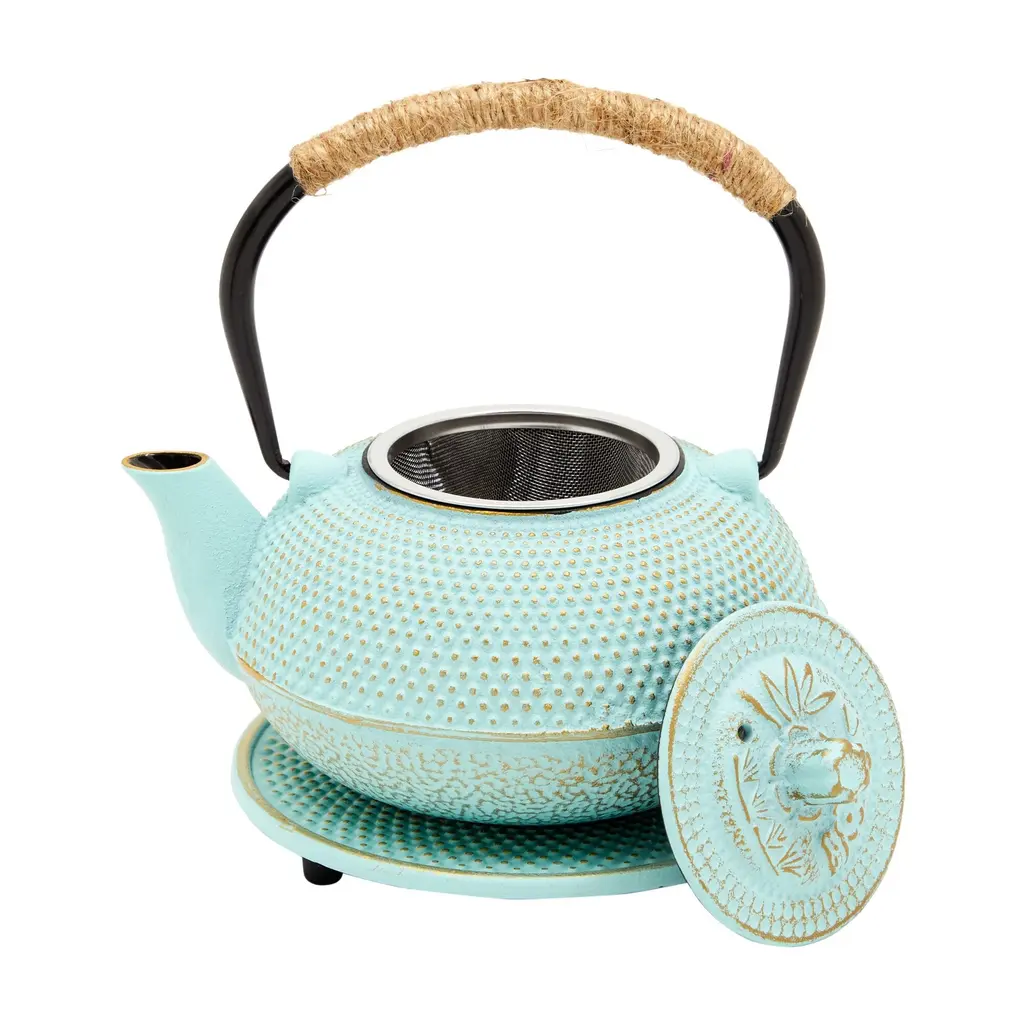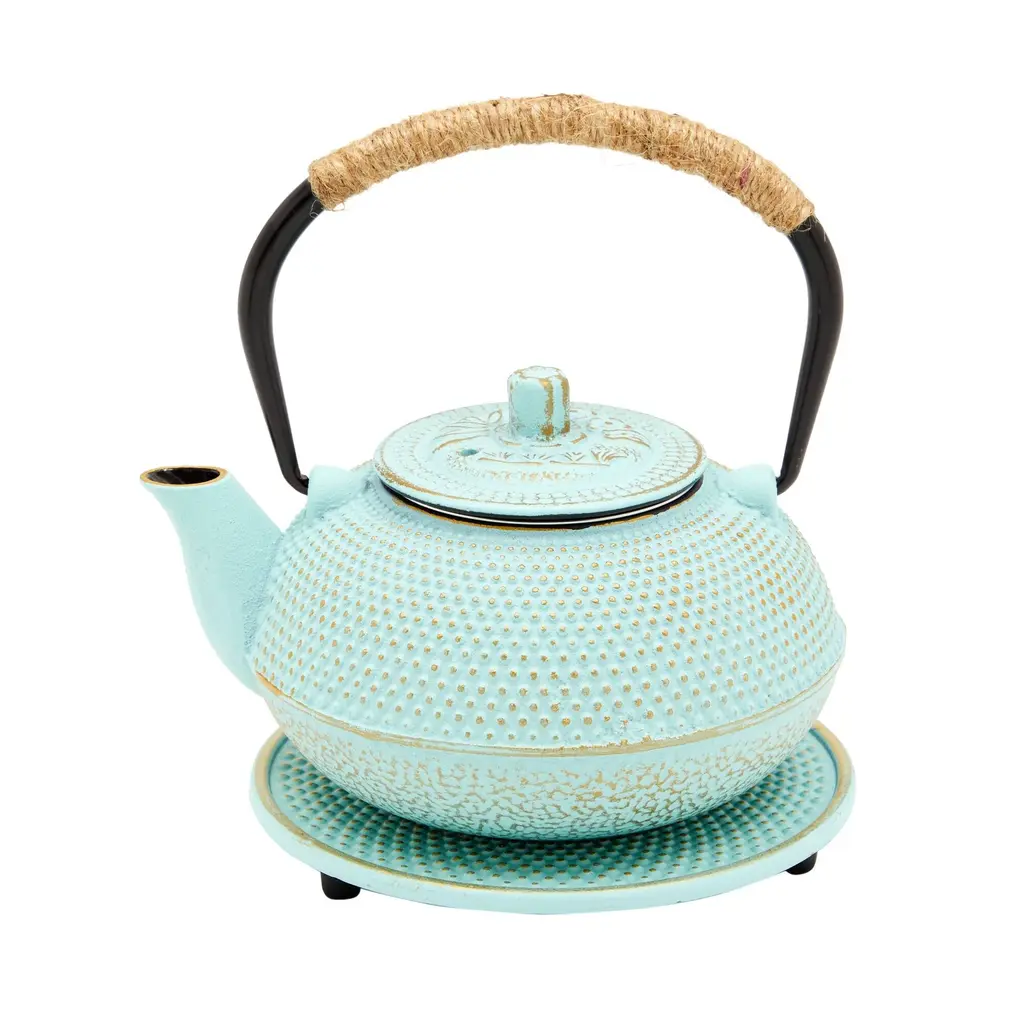 Give this green japanese cast iron teapot as a thoughtful gift to a friend, loved one, or tea connoisseur. The ergonomic fold-down handle and shortly curved spout allow for easy grip and convenient pouring. The green tea pot also features a lovely spotted design that is sure to match your modern kitchen decor and is made from durable cast iron ideal for loose leaf tea. Please note, this 27 oz green teapot is not for stovetop use. For best results, heat water into a separate vessel, then pour into the cast iron teapot warmer. This product contains Perfluoroalkyl and Polyfluoroalkyl Substances (PFAs). For more information about chemicals in this product, visit CalSafer Candidate Chemical List at https://calsafer.dtsc.ca.gov/cms/search/?type=Chemical