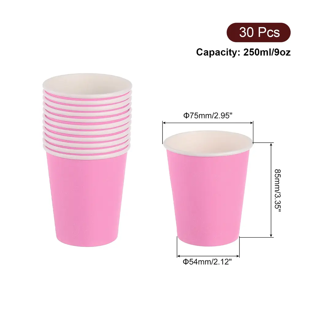 30 Pcs Colorful Disposable Paper Cups, 9 Oz Diy Paper Cups For Parties - Pink