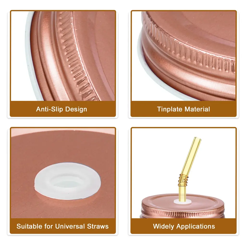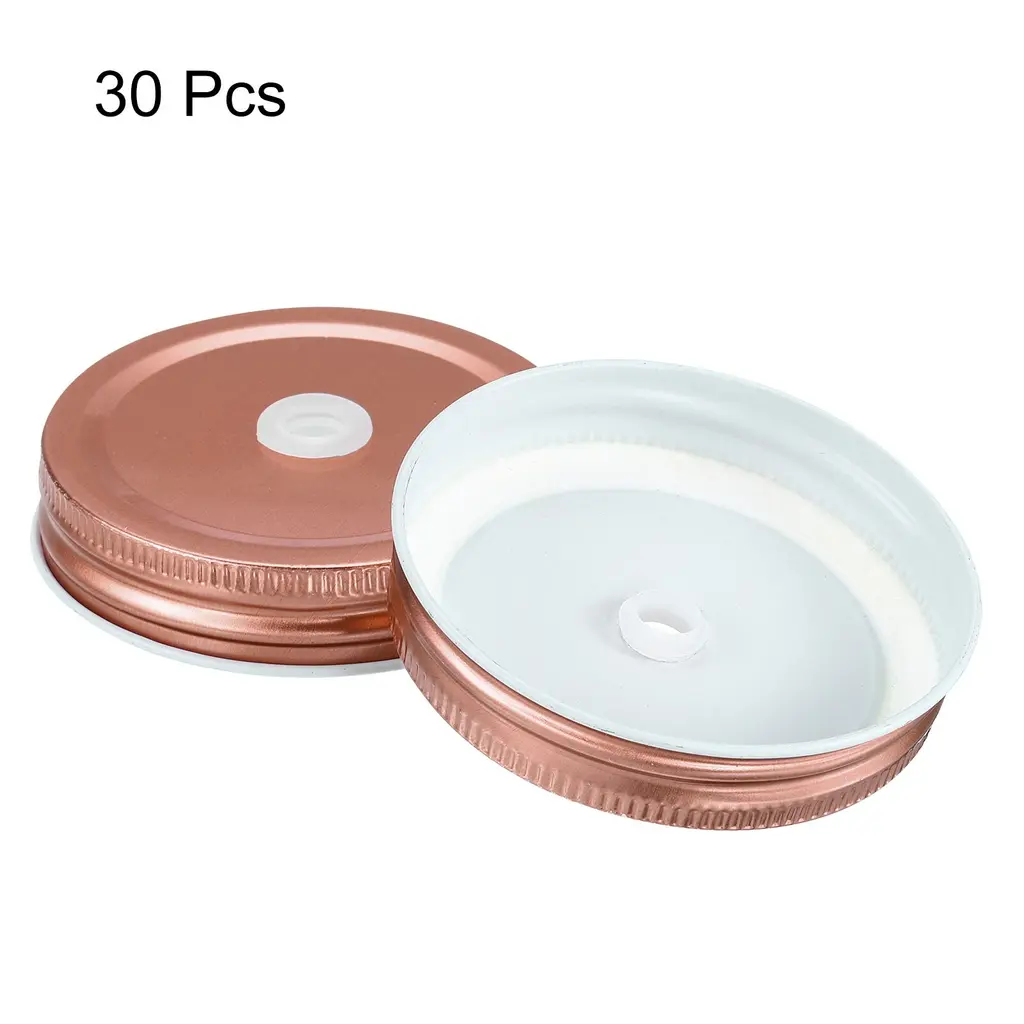 30pcs 70mm Tinplate Mason Jar Lids Regular Mouth With Straw Hole - Rose Gold